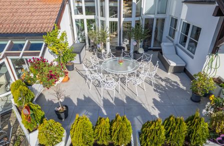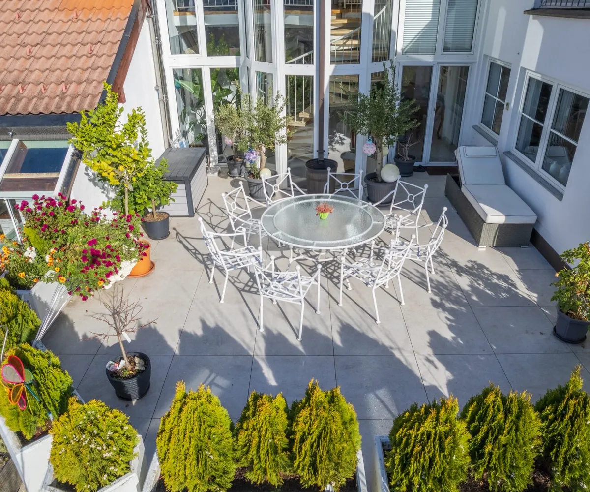 Der Außenbereich ist vom Erdgeschoss wie auch vom Untergeschoss aus erreichbar.