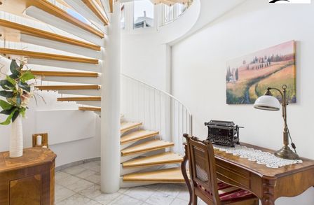 Diese außergewöhnliche Immobilie vereint stilvolles Wohnen mit einem Höchstmaß an Lebensqualität und Naturverbundenheit. Ursprünglich als große Villa errichtet, wurde das Haus später in drei separate Wohneinheiten unterteilt – dennoch vermittelt die angebotene Einheit das Gefühl, ein Einfamilienhaus zu bewohnen, da sie über besonders viel Privatsphäre verfügt.