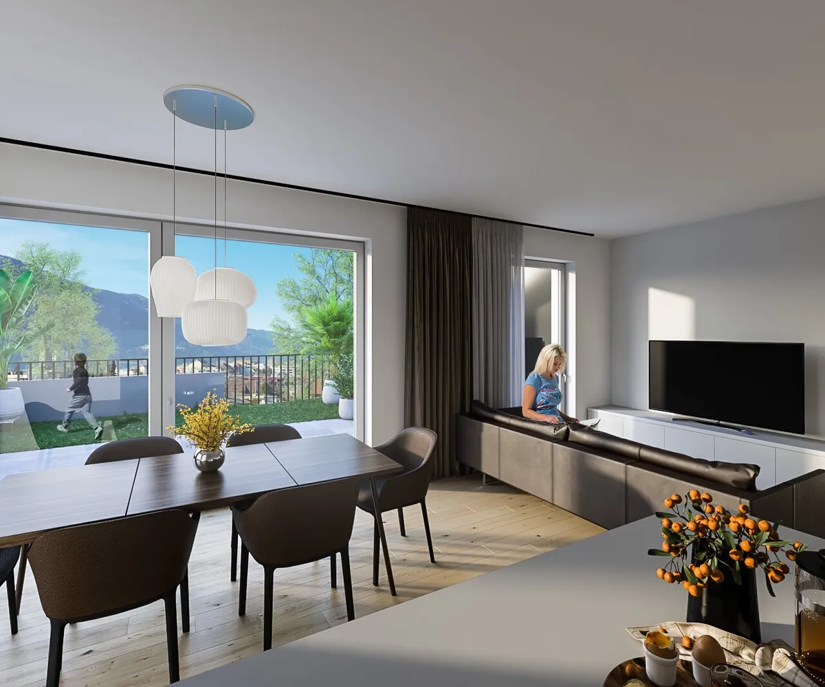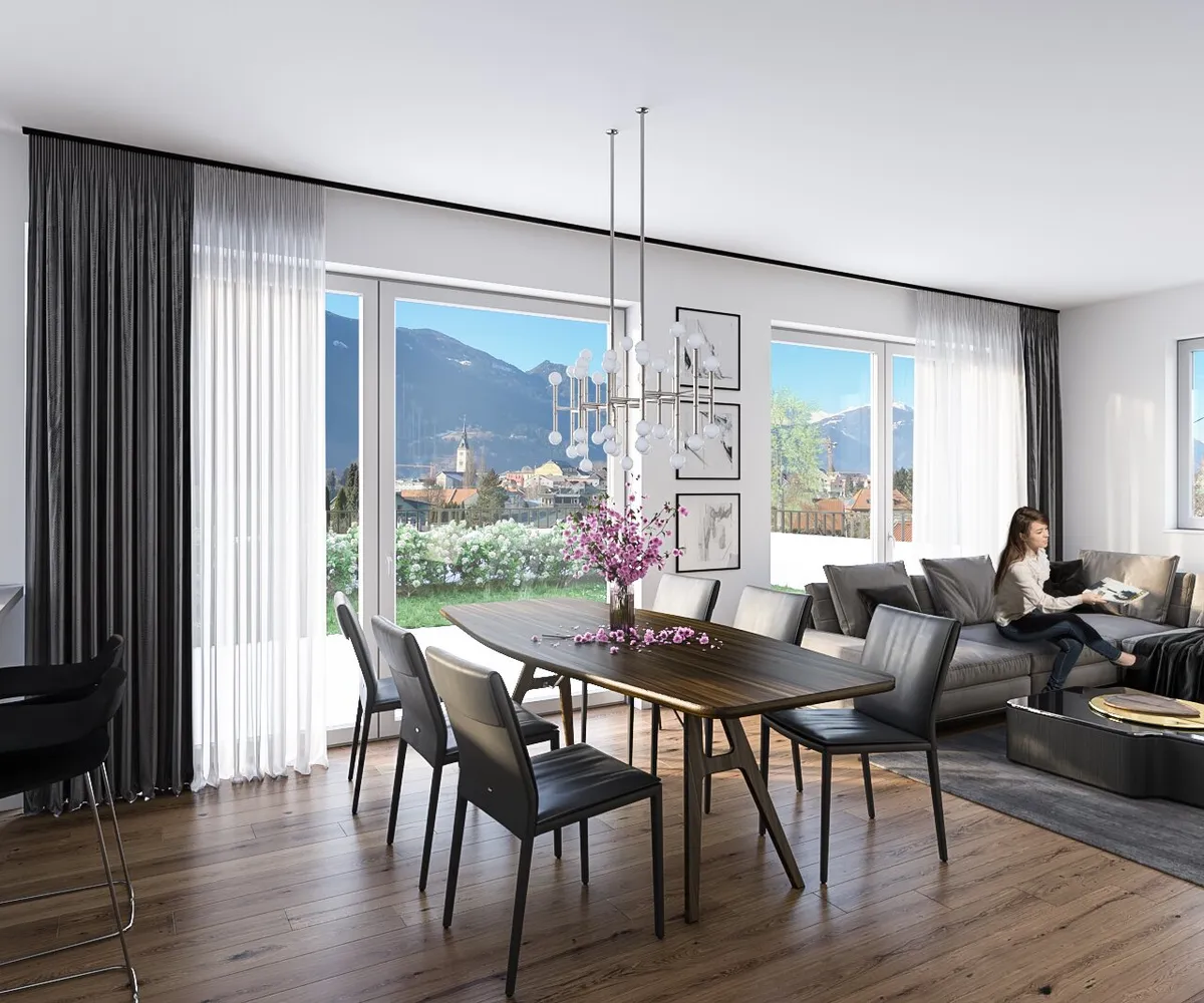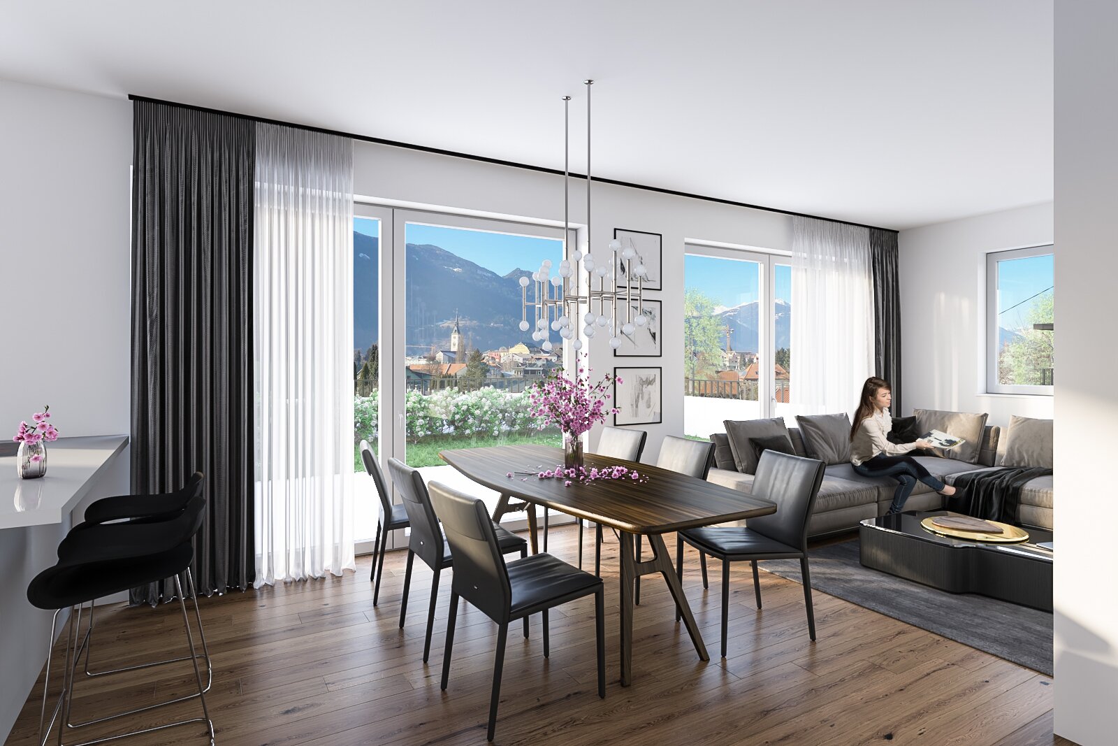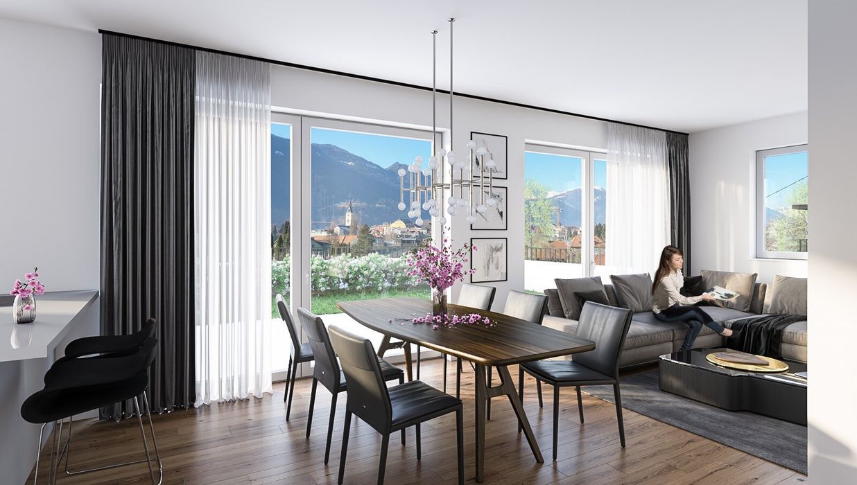 Wohnen in der Vorstadt und Freude am Schönen erleben - der Rundumblick auf den Hausberg der Spittaler – das Goldeck und die Stadt Spittal kombiniert sich hier mit einer Auswahl an hochwertigen Materialien und individuellen Vorlieben.