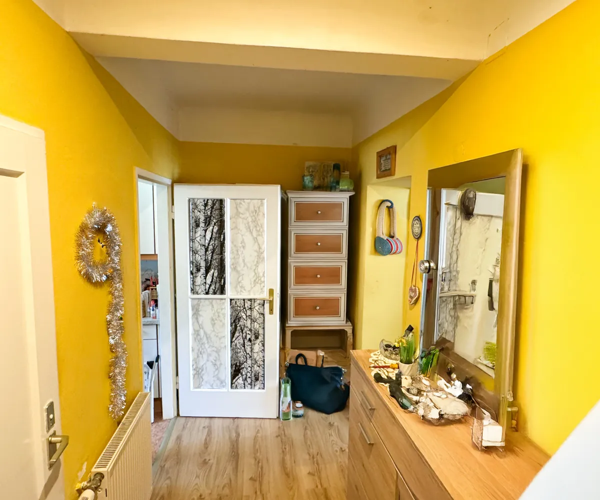 Die Wohnung wird OHNE Wohnungseinrichtung verkauft. Die bestehende Wohnungseinrichtung wurde auf Wunsch der Mieterin durch eine virtuelle Wohnungseinrichtung ersetzt. Die Wohnung selbst und die Wände wurden unverändert belassen.