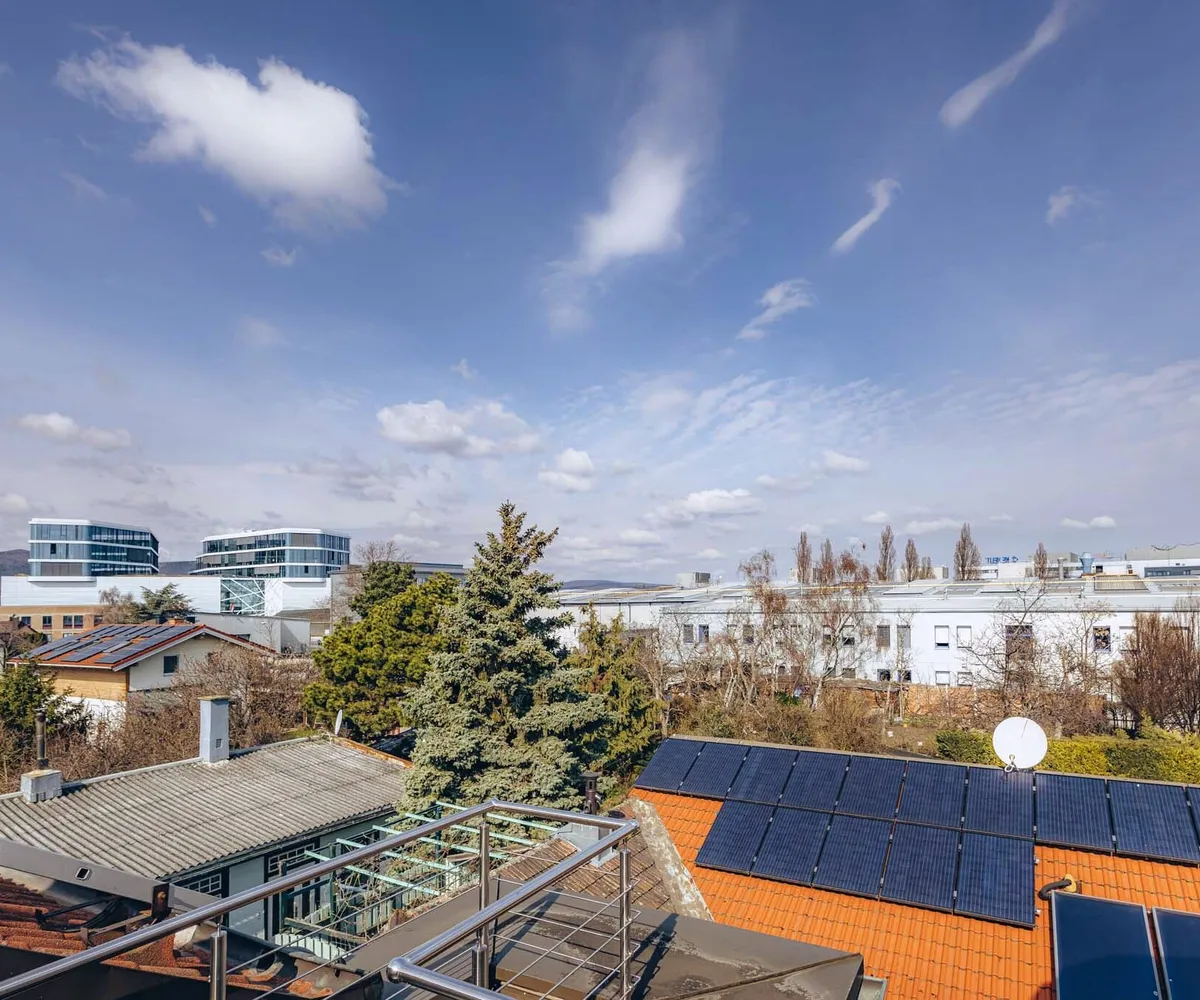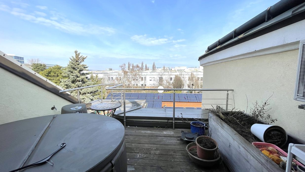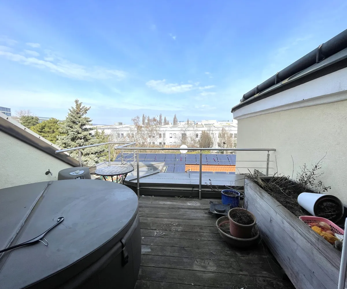 Die rund 102 m² große Dachgeschosswohnung befindet sich in einem gepflegten Altbau, wobei die Dachgeschossfläche als moderner Ausbau/Zubau mit besonderem architektonischen Charakter errichtet wurde. Dadurch verbindet die Wohnung klassischen Altbauflair mit zeitgemäßem Wohnkomfort und moderner Technik, einschließlich Solarenergie .