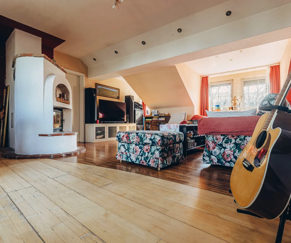 Die Kombination aus großzügigem Grundriss, Dachgeschosslage und charaktervollen architektonischen Details verleiht dieser Wohnung ein besonderes Wohngefühl.