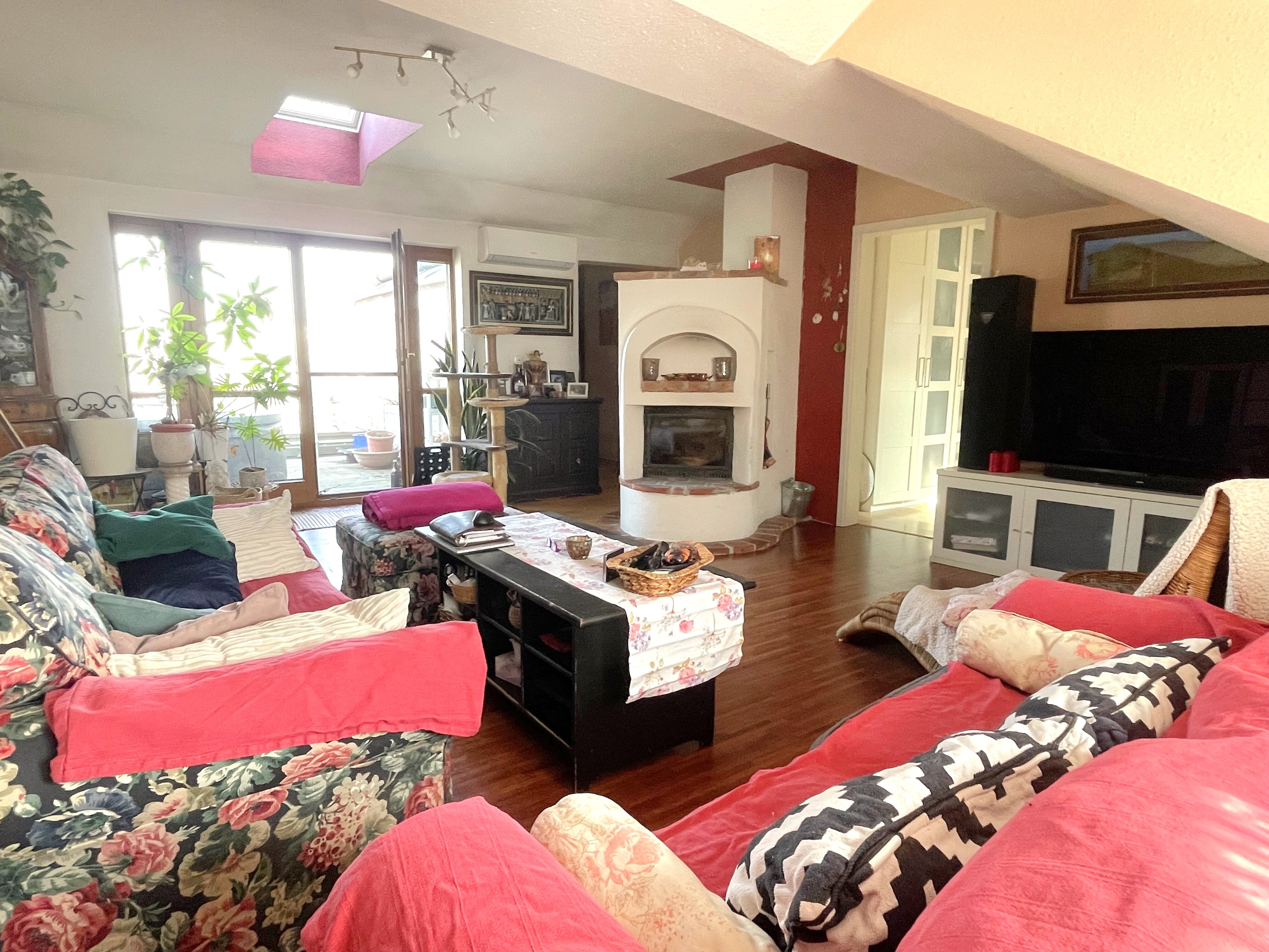 Das Herzstück der Wohnung bildet das geräumige Wohnzimmer mit rund 36 m² , das viel Platz zum Entspannen und Wohlfühlen bietet. Der Kamin sorgt besonders in den Wintermonaten für eine angenehme und gemütliche Atmosphäre. Die separate Küche mit rund 19 m² ist mit hochwertigen Markengeräten ausgestattet und bietet ausreichend Platz für einen Essbereich.