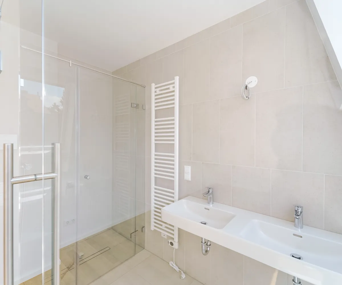 Das Projekt bietet nicht nur architektonische Eleganz, sondern setzt auch in puncto Ausstattung höchste Standards. Große Fenster mit Dreifachverglasung sorgen für lichtdurchflutete Räume und eine angenehme Wohnatmosphäre. Raffstores bieten flexiblen Sonnenschutz und Privatsphäre. Edle Parkettböden in den Wohnräumen und moderne Feinsteinzeugfliesen in den Bädern unterstreichen den hohen Komfort. Eine innovative Haustechnik mit Luftwärmepumpe und Fußbodenheizung sorgt für angenehme Temperaturen zu jeder Jahreszeit.