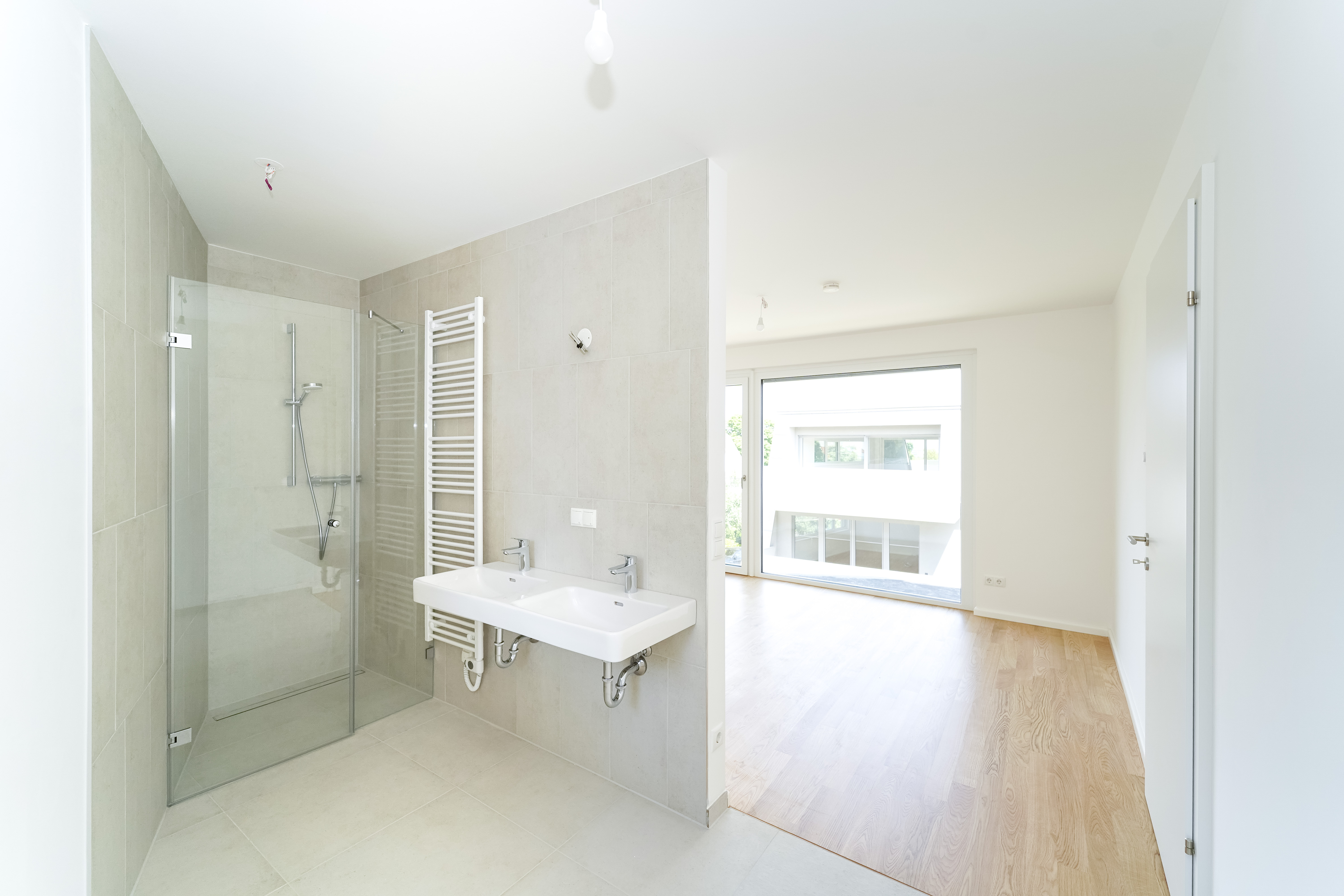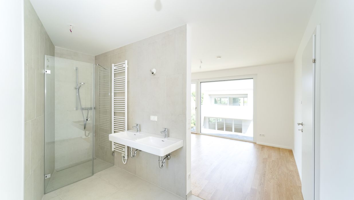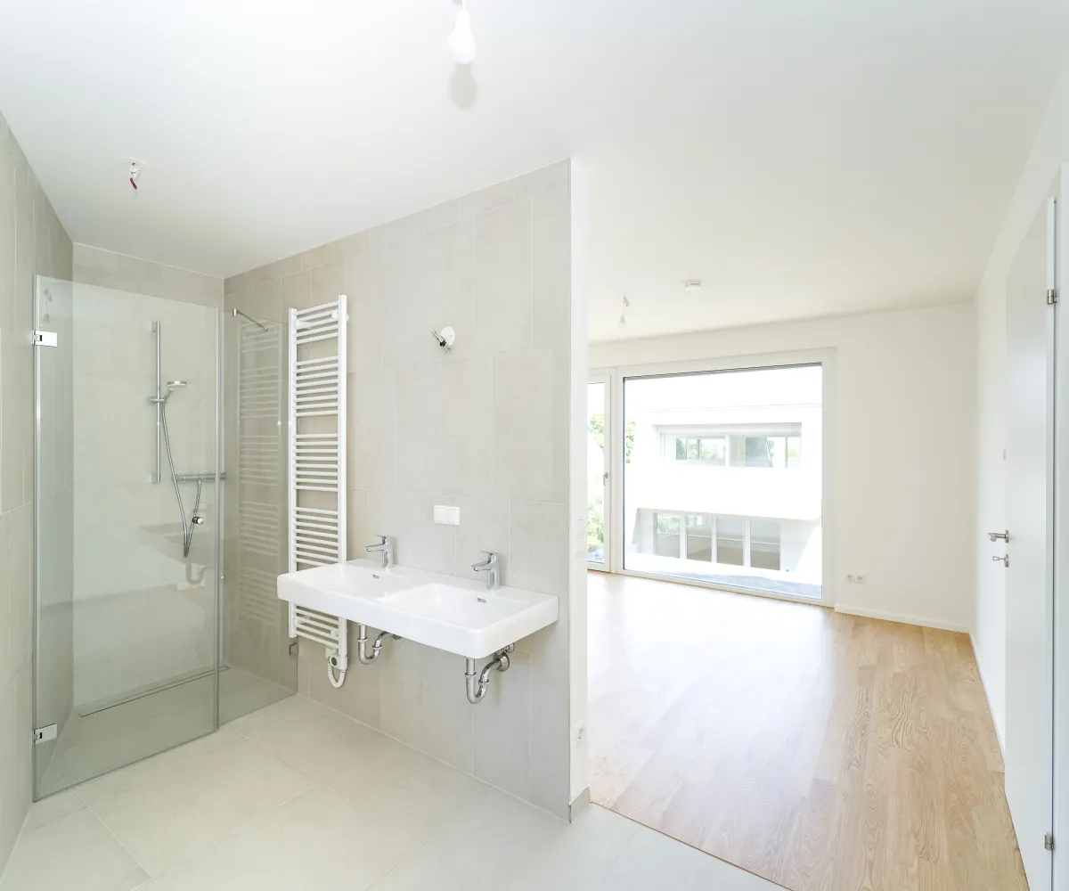 Das Projekt bietet nicht nur architektonische Eleganz, sondern setzt auch in puncto Ausstattung höchste Standards. Große Fenster mit Dreifachverglasung sorgen für lichtdurchflutete Räume und eine angenehme Wohnatmosphäre. Raffstores bieten flexiblen Sonnenschutz und Privatsphäre. Edle Parkettböden in den Wohnräumen und moderne Feinsteinzeugfliesen in den Bädern unterstreichen den hohen Komfort. Eine innovative Haustechnik mit Luftwärmepumpe und Fußbodenheizung sorgt für angenehme Temperaturen zu jeder Jahreszeit.