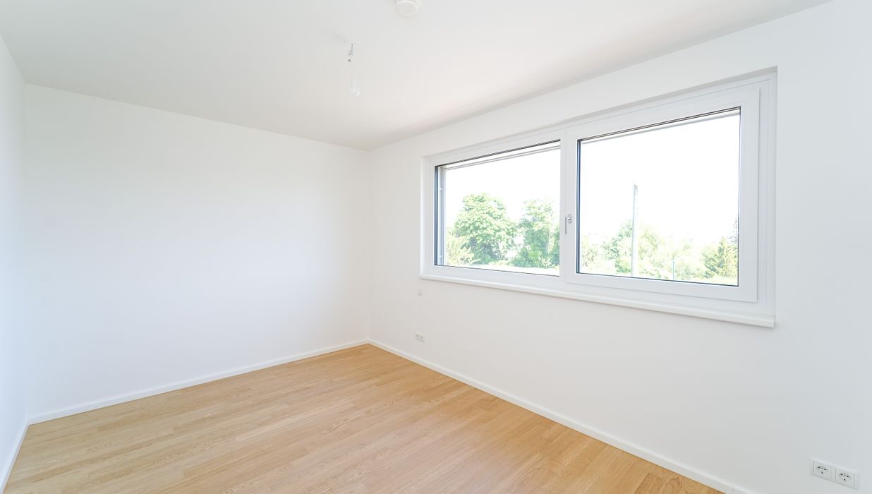 Das Projekt bietet nicht nur architektonische Eleganz, sondern setzt auch in puncto Ausstattung höchste Standards. Große Fenster mit Dreifachverglasung sorgen für lichtdurchflutete Räume und eine angenehme Wohnatmosphäre. Raffstores bieten flexiblen Sonnenschutz und Privatsphäre. Edle Parkettböden in den Wohnräumen und moderne Feinsteinzeugfliesen in den Bädern unterstreichen den hohen Komfort. Eine innovative Haustechnik mit Luftwärmepumpe und Fußbodenheizung sorgt für angenehme Temperaturen zu jeder Jahreszeit.