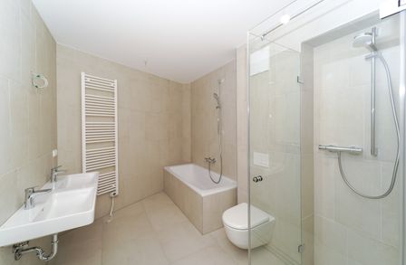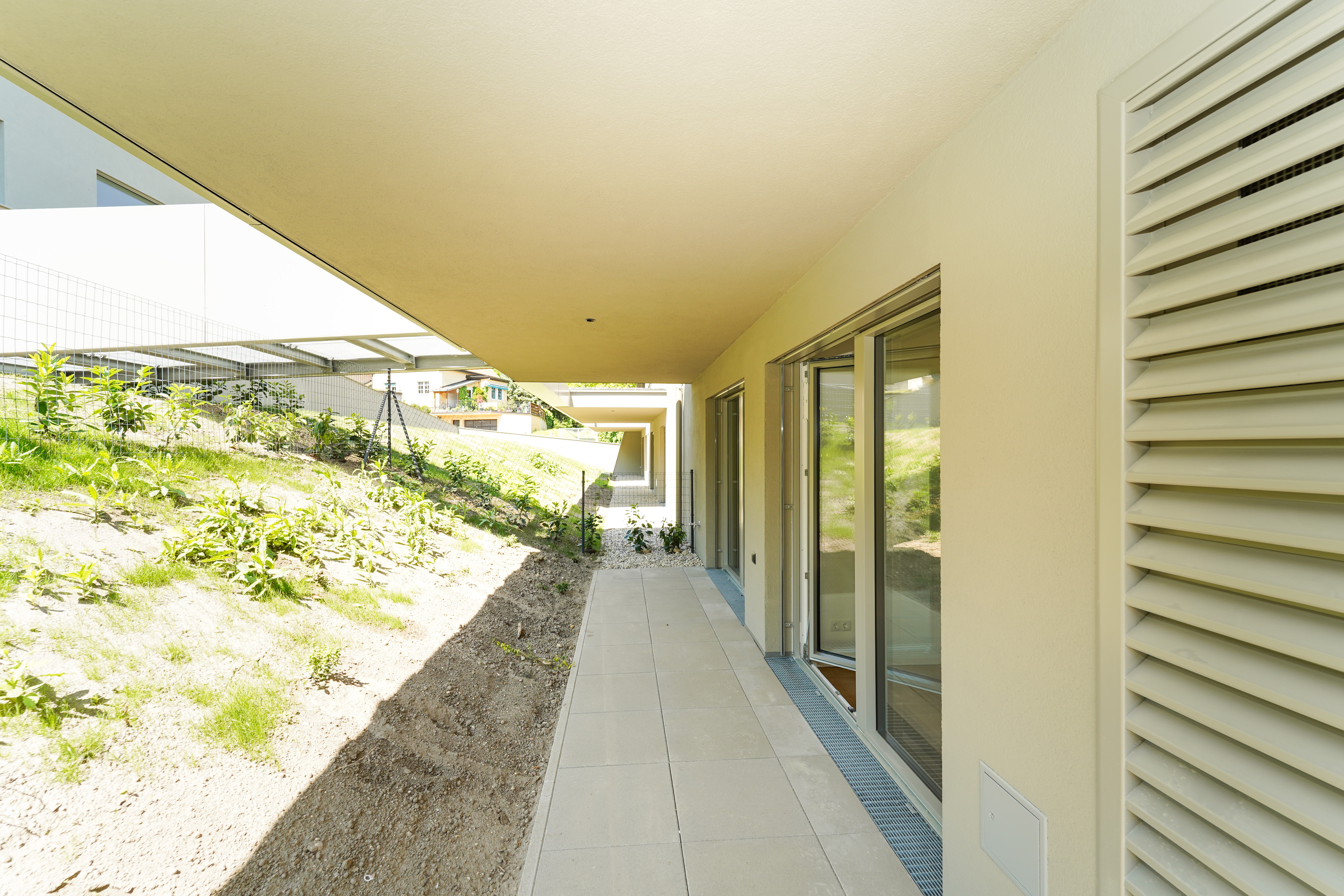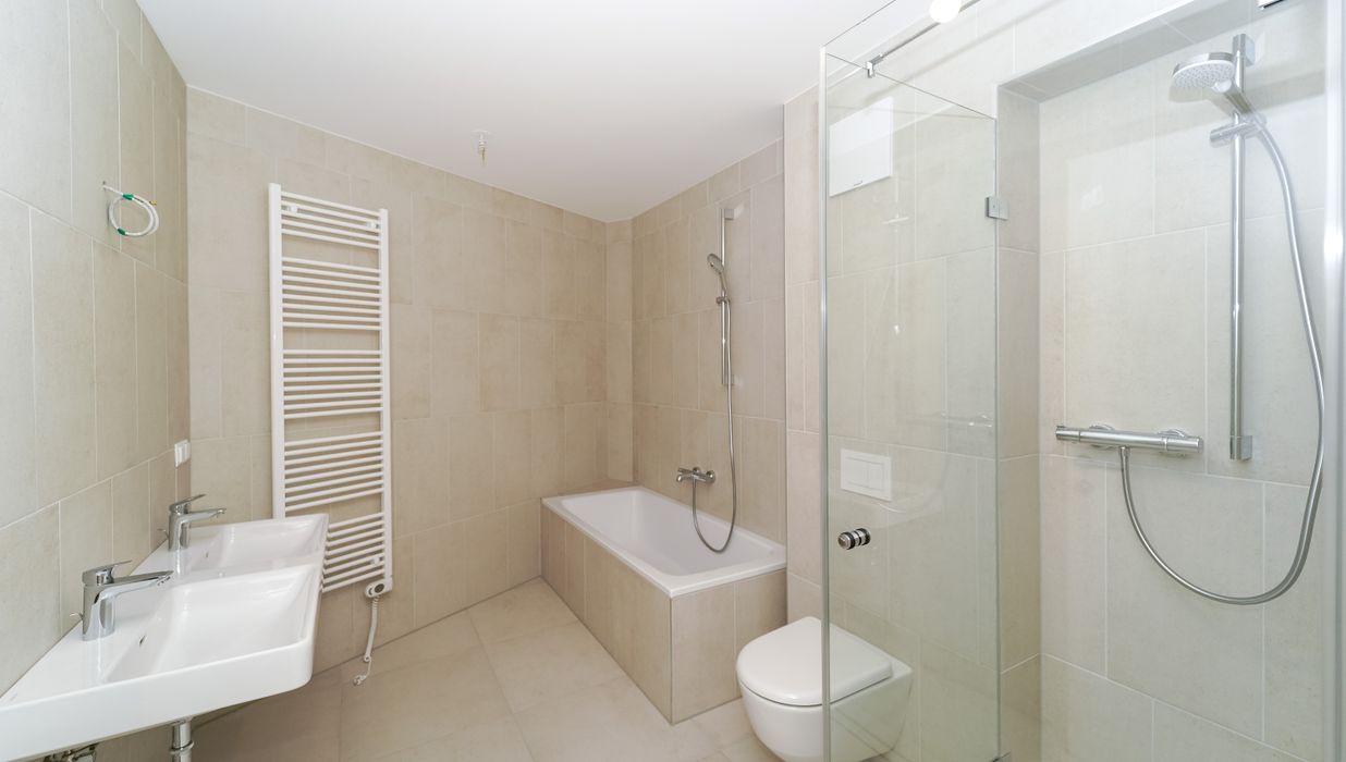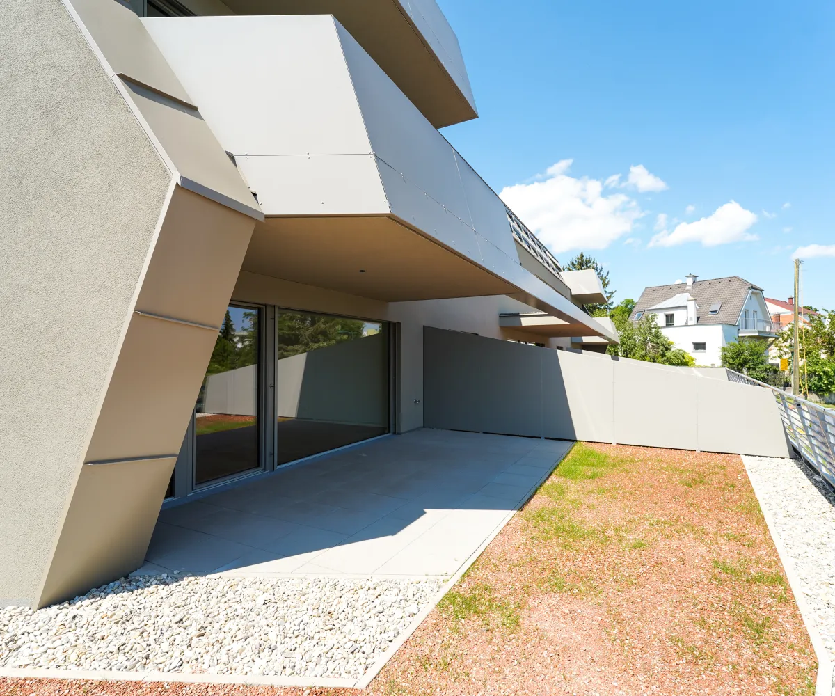 Das Projekt bietet nicht nur architektonische Eleganz, sondern setzt auch in puncto Ausstattung höchste Standards. Große Fenster mit Dreifachverglasung sorgen für lichtdurchflutete Räume und eine angenehme Wohnatmosphäre. Raffstores bieten flexiblen Sonnenschutz und Privatsphäre. Edle Parkettböden in den Wohnräumen und moderne Feinsteinzeugfliesen in den Bädern unterstreichen den hohen Komfort. Eine innovative Haustechnik mit Luftwärmepumpe und Fußbodenheizung sorgt für angenehme Temperaturen zu jeder Jahreszeit.