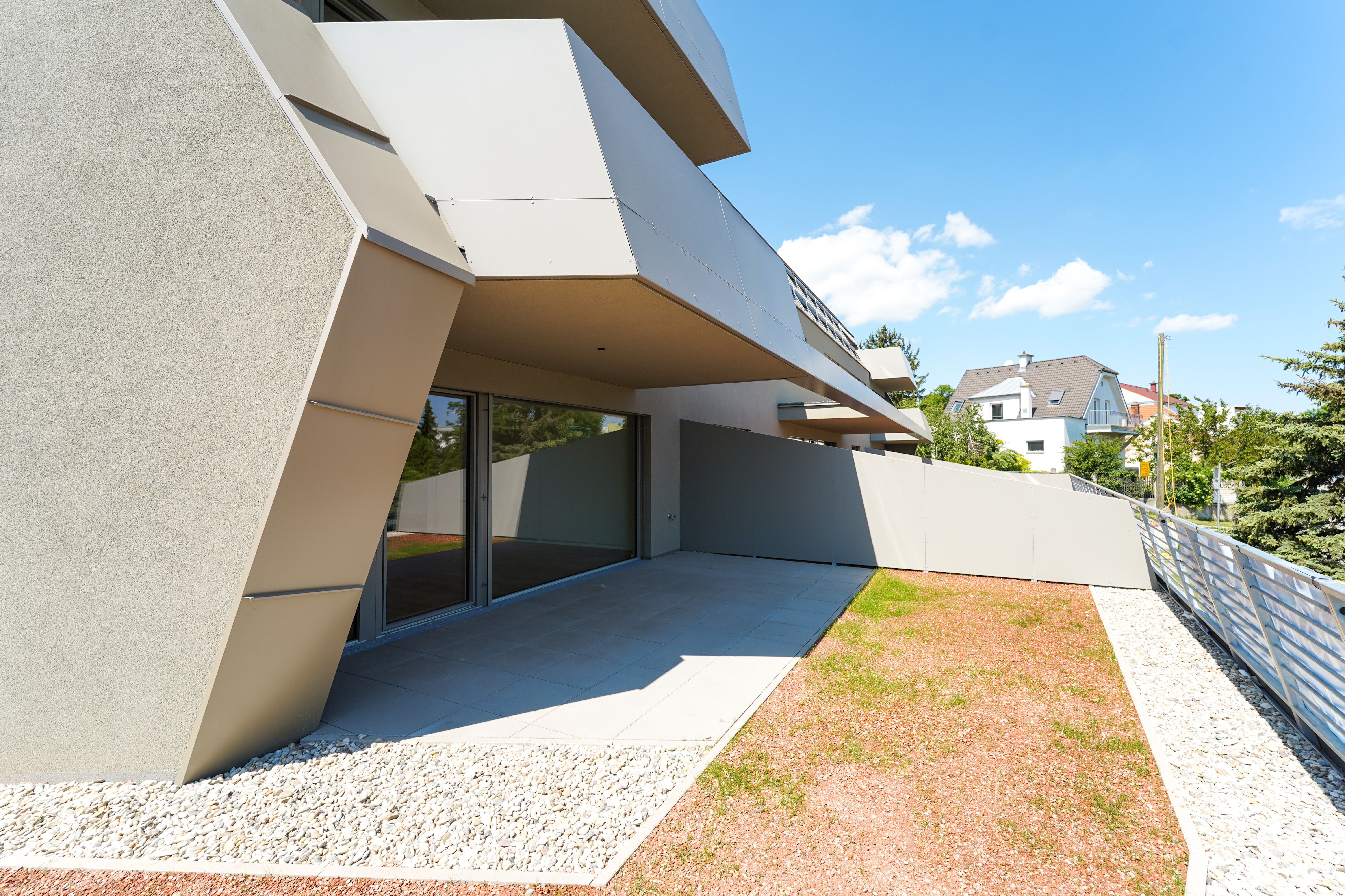 Im zweiten Bauteil befinden sich zwei exklusive Townhäuser, die sich durch großzügige Flächen, private Gärten und luxuriöse Ausstattung auszeichnen. Diese Townhäuser bieten das Gefühl eines Eigenheims mit den Vorteilen einer hochwertigen Wohnanlage und sind besonders attraktiv für anspruchsvolle Mieter.