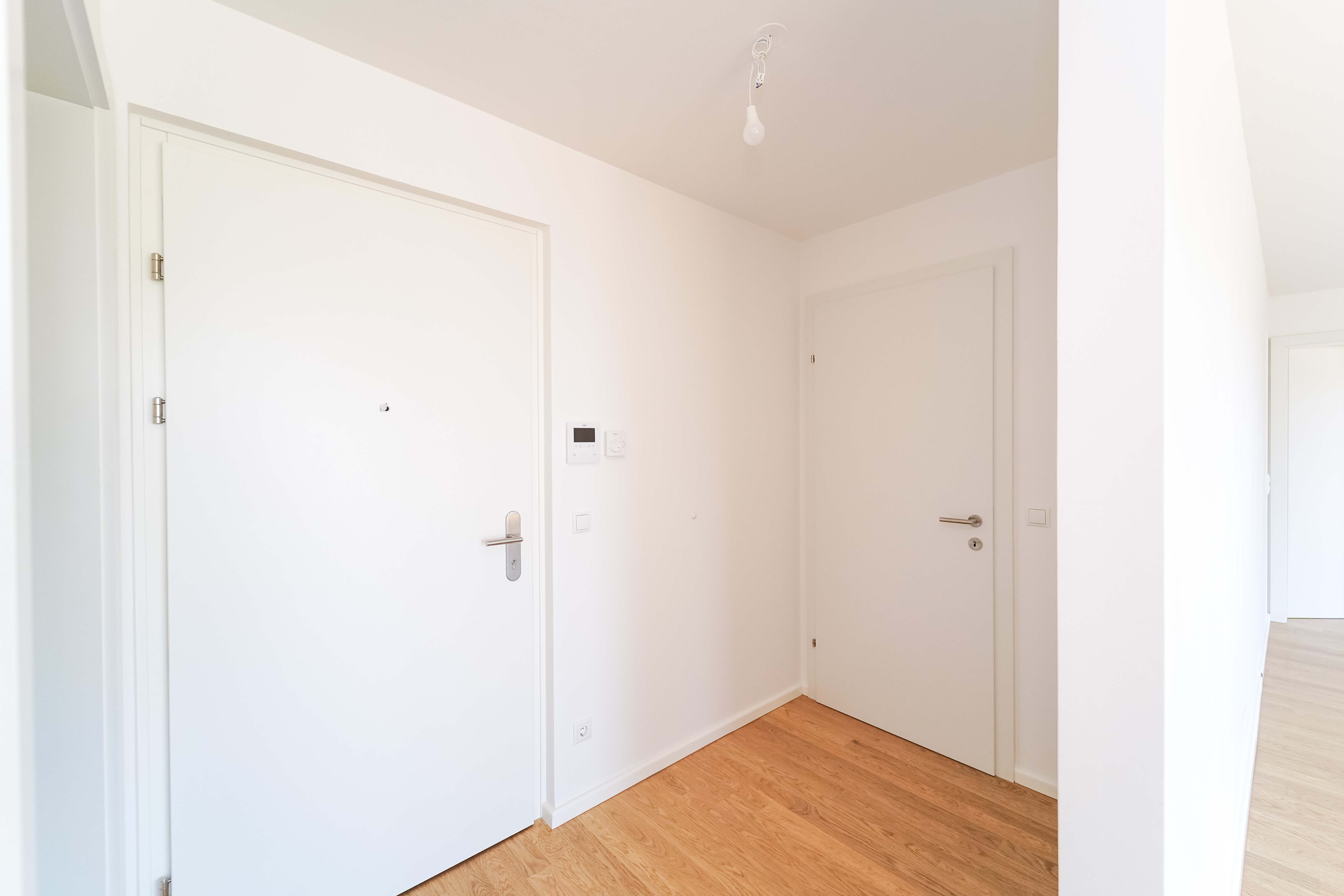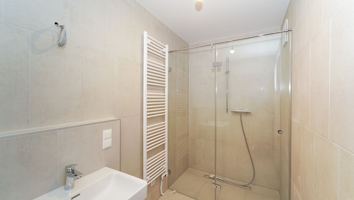 Das Projekt bietet nicht nur architektonische Eleganz, sondern setzt auch in puncto Ausstattung höchste Standards. Große Fenster mit Dreifachverglasung sorgen für lichtdurchflutete Räume und eine angenehme Wohnatmosphäre. Raffstores bieten flexiblen Sonnenschutz und Privatsphäre. Edle Parkettböden in den Wohnräumen und moderne Feinsteinzeugfliesen in den Bädern unterstreichen den hohen Komfort. Eine innovative Haustechnik mit Luftwärmepumpe und Fußbodenheizung sorgt für angenehme Temperaturen zu jeder Jahreszeit.