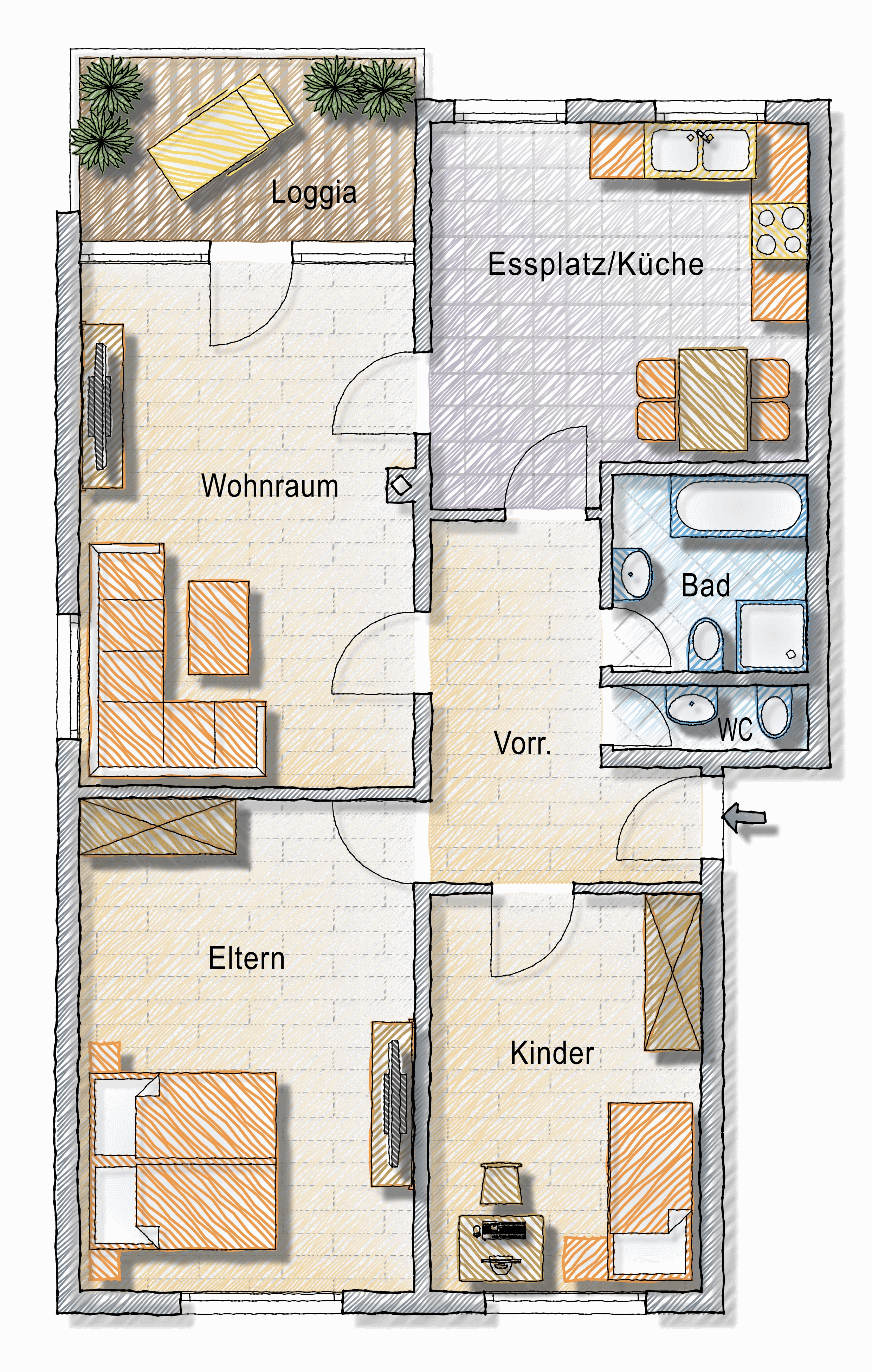 Diese einladende Wohnung im Hochparterre überzeugt schon beim Eintreten durch ihre durchdachte Raumaufteilung und das angenehme Wohngefühl. Der sonnige Balkon lädt zum Entspannen ein – hier lässt sich der Tag wunderbar bei einem Glas Wein ausklingen, während die Sonne langsam hinter den Bergen versinkt.