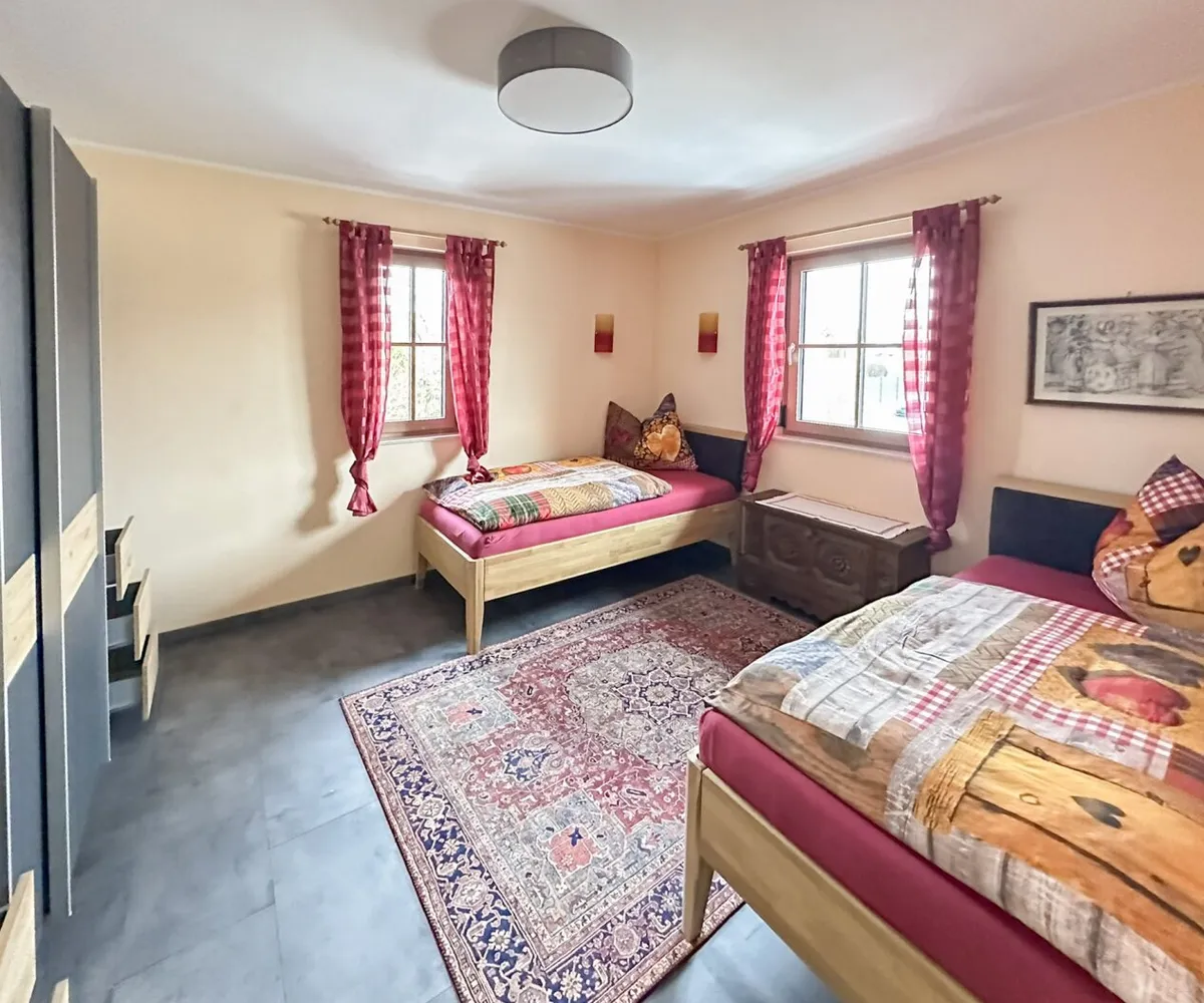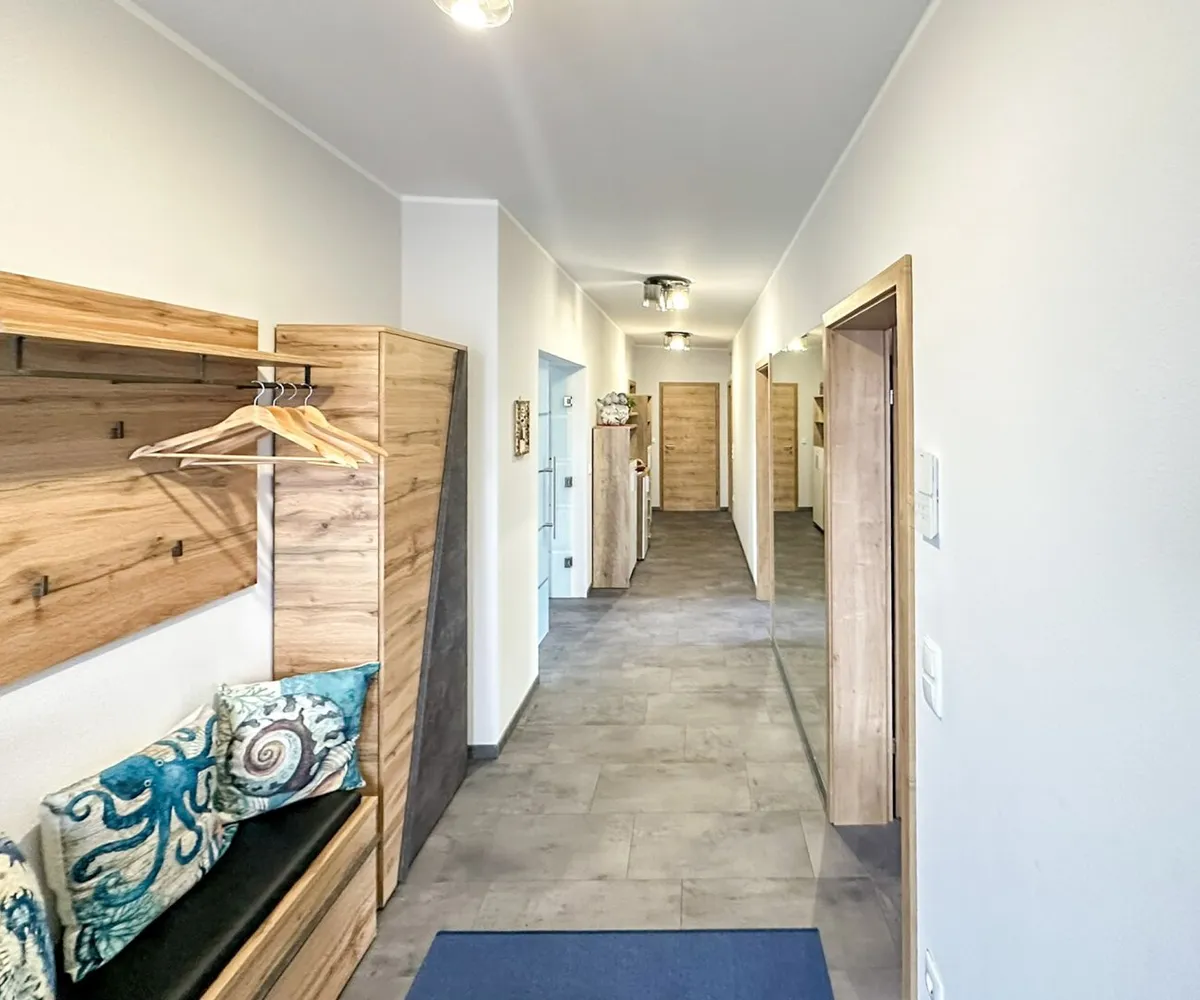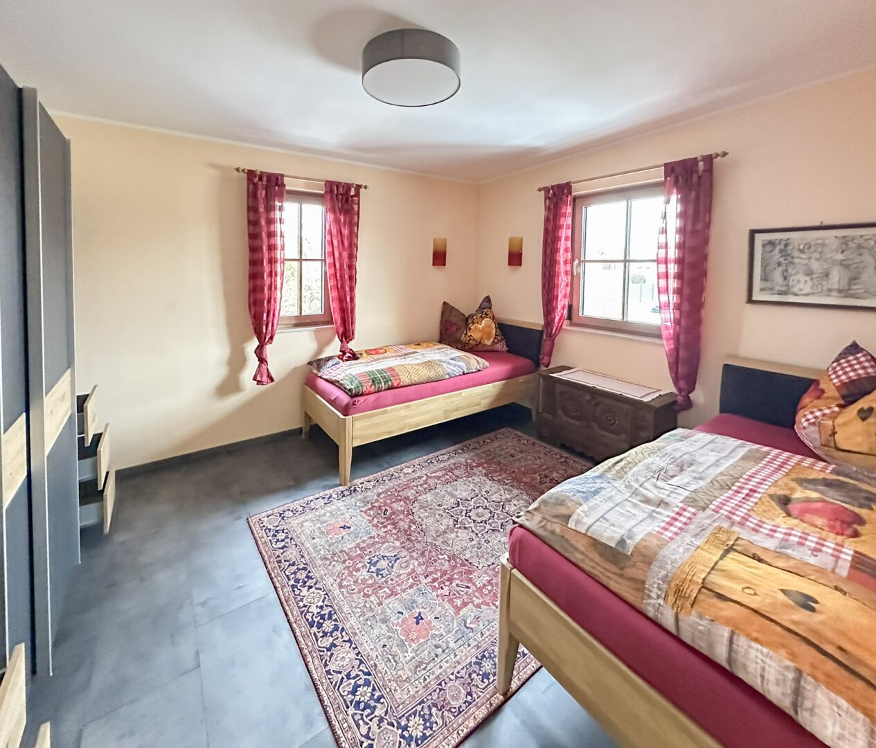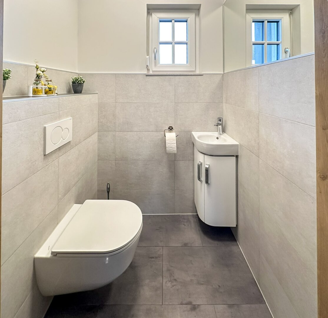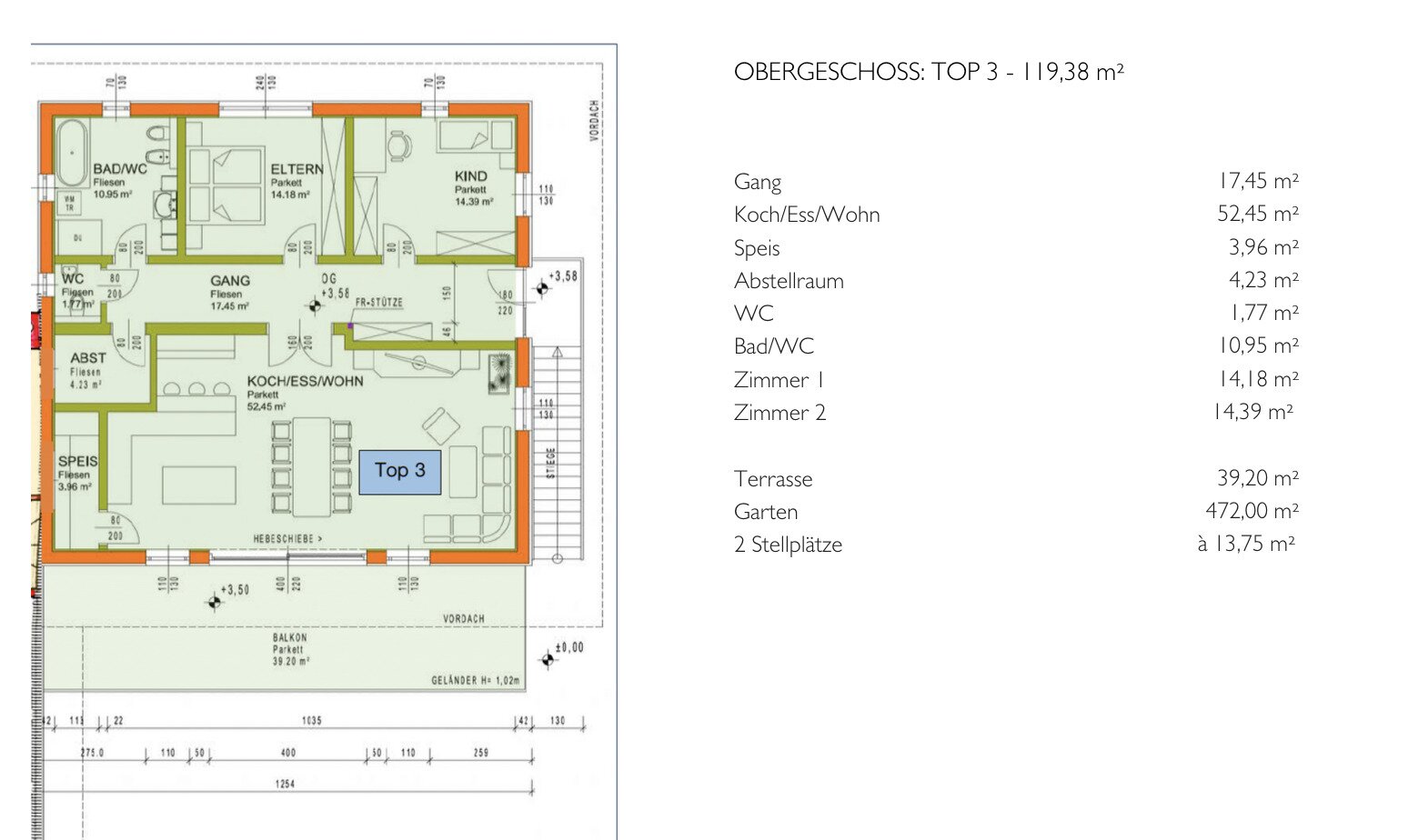 Der private Bereich ist mit zwei separaten ca. 14qm großen Zimmern gut gelöst. Ergänzt wird die Wohnfläche durch einen großzügigen Gang sowie ein geräumiges Badezimmer. Zusätzlich gibt es ein separates Gäste-WC. Praktische Nebenflächen sind durch einen Abstellraum sowie eine Speis gegeben.
