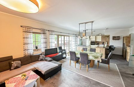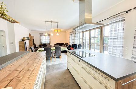 Das Herzstück dieser Wohnung ist der großzügige, offen gestaltete Wohn-, Ess- und Kochbereich mit rund 54 qm. Von hier aus ist die große Terrasse direkt angebunden, wodurch sich das Wohnen in den Außenbereich erweitert. Eine knapp 40 qm große Terrasse bietet genug Platz für Essbereich, Lounge und Pflanzen. Neben der Terrasse ist der Wohnung laut Unterlagen ein Eigengarten mit rund 470 qm zugeordnet.