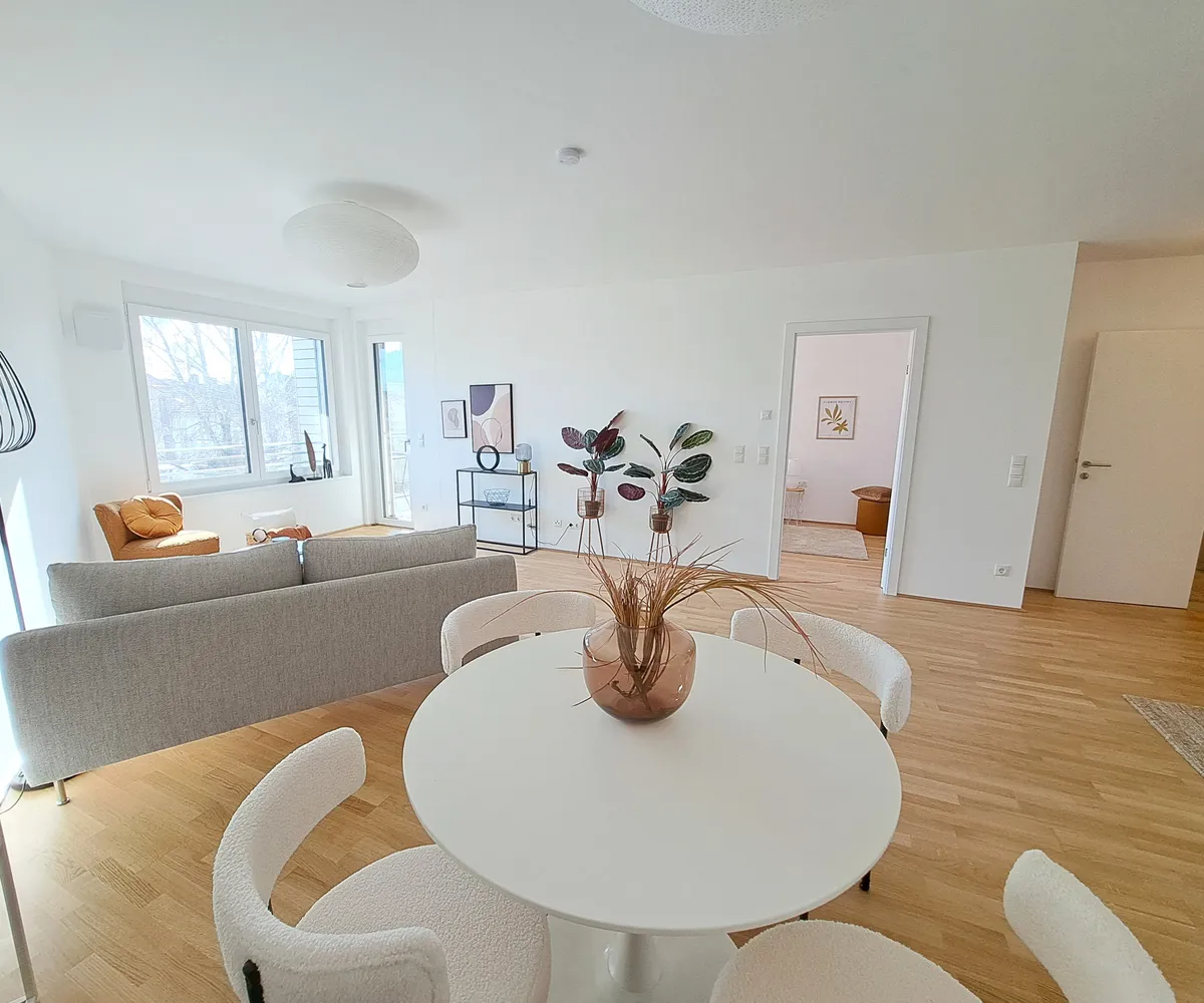 In einem modernen Erstbezugsprojekt, bestehend aus zwei harmonisch abgestimmten Wohnhäusern, finden sich Eigentumswohnungen mit Größen von 52 bis 105 m². Mit 2- bis 4-Zimmer-Einheiten finden Sie genau das Zuhause, das zu Ihrem Lebensstil passt.