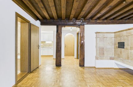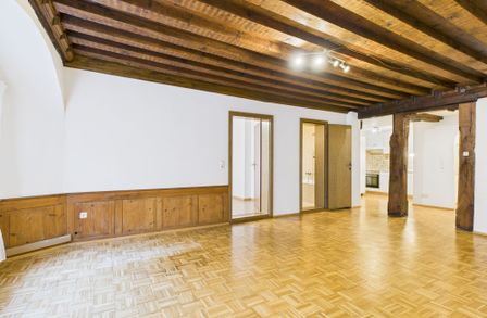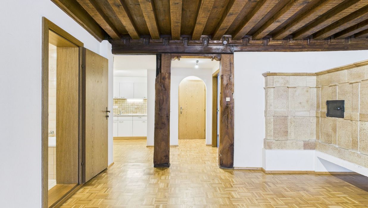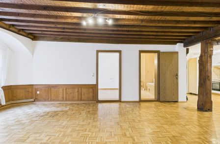 Im ersten Stock dieses Gebäudes befindet sich diese Charmante 3-Zimmer-Wohnung. Ein gut erhaltener Parkettboden befindet sich im gesamten Wohn-Essbereich. Unterstrichen wird der gesamte Stil durch die Sichtbaren Holzbalken im Eingangsbereich und der Decke im Wohnbereich. Auch der Holzofen der nicht mehr in Betrieb ist, bildet ein typisch charakteristischer Hingucker. Die beiden Schlafzimmer sind mit Laminatböden ausgestattet. Die kleine Küche und das Badezimmer runden diese Altbauwohnung ab.