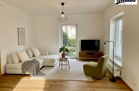 Diese ca. 90 m² große 2-Zimmer-Wohnung kombiniert eine durchdachte Raumaufteilung mit lichtdurchfluteten Räumen, hochwertiger Ausstattung und einer traumhaften Außenfläche. Herzstück ist der großzügige Wohn-/Essbereich mit direktem Zugang zur sonnigen Terrasse und dem eigenen Garten, der mit einem eleganten Pavillon ausgestattet ist – perfekt für entspannte Stunden im Freien oder gesellige Abende mit Freunden.