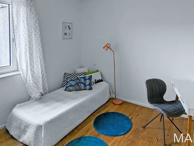 – 1 großzügies Schlafzimmer mit Zugang zum Garten