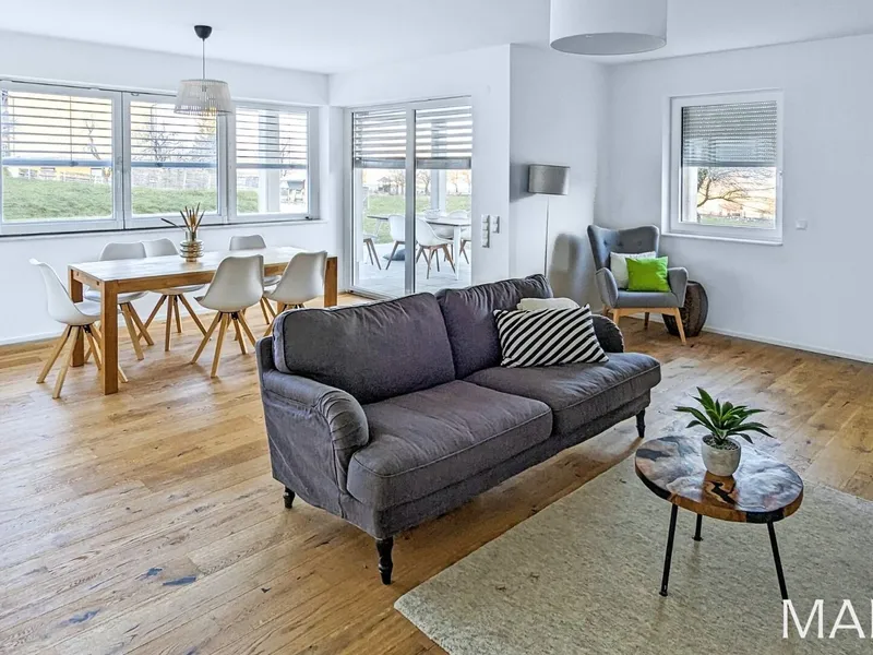 – Großzügiger Wohn-/Essbereich mit Zugang zur Terrasse und dem privaten Garten