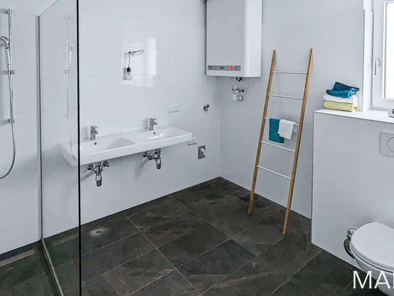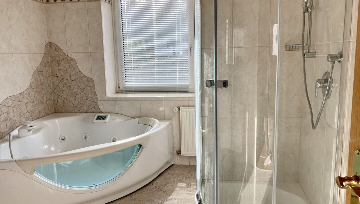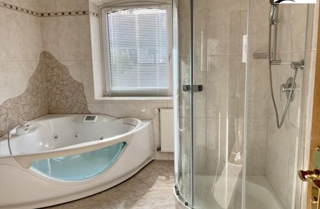 – Hochwertiges Badezimmer mit Dusche & Whirlpool-Eckwanne
