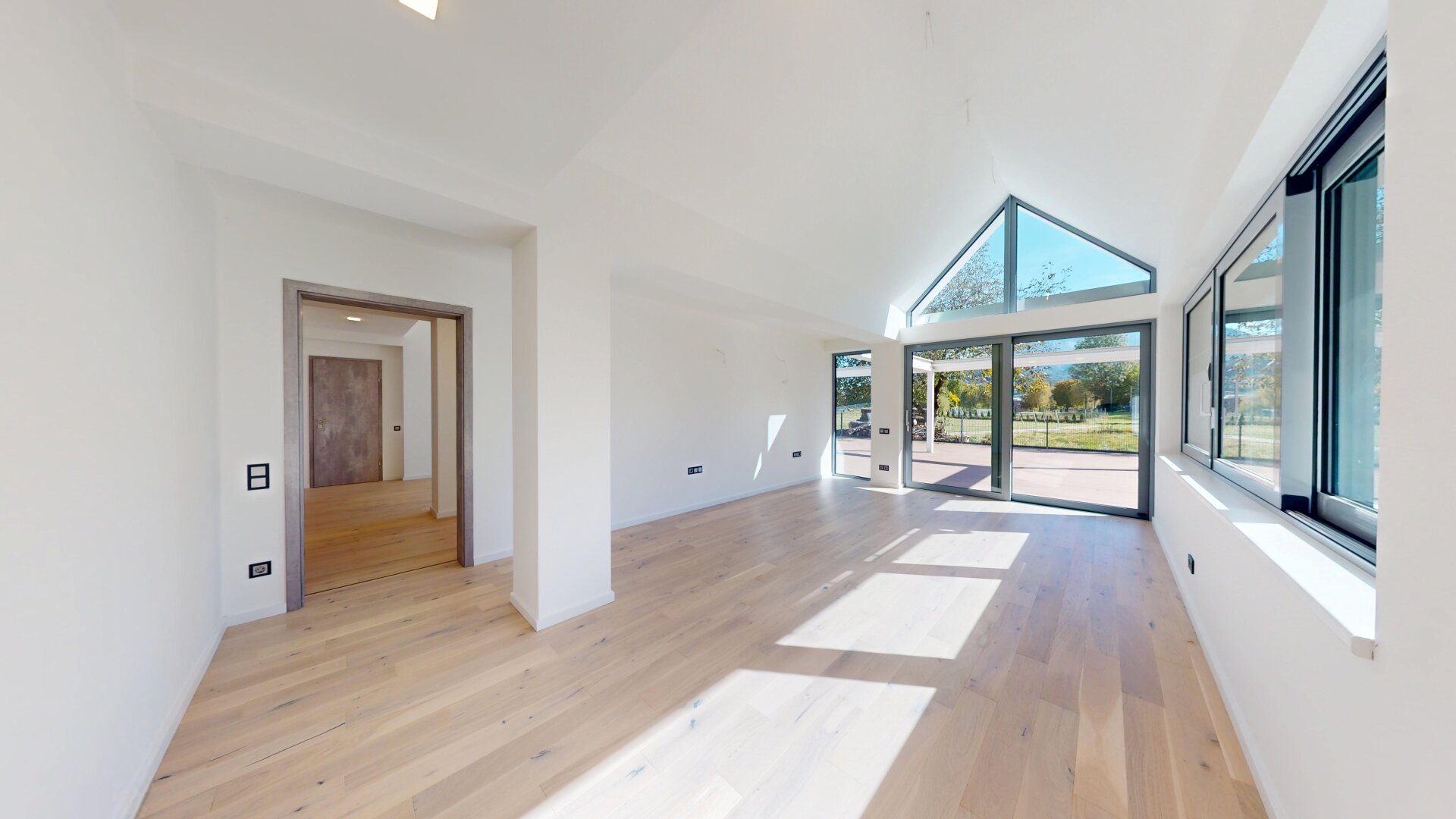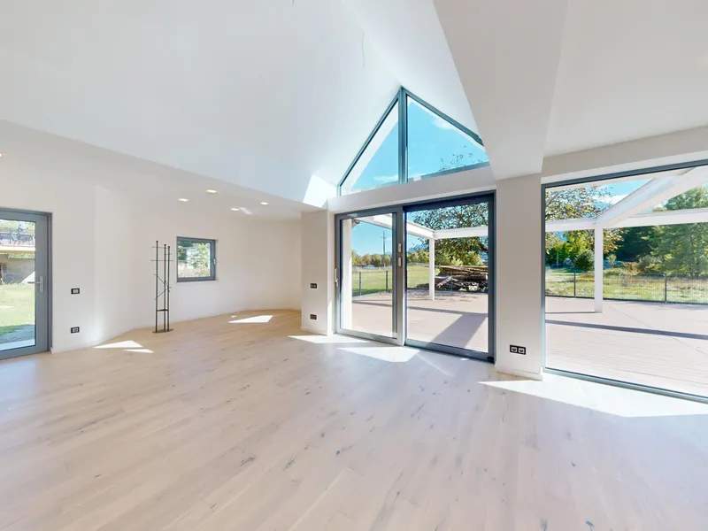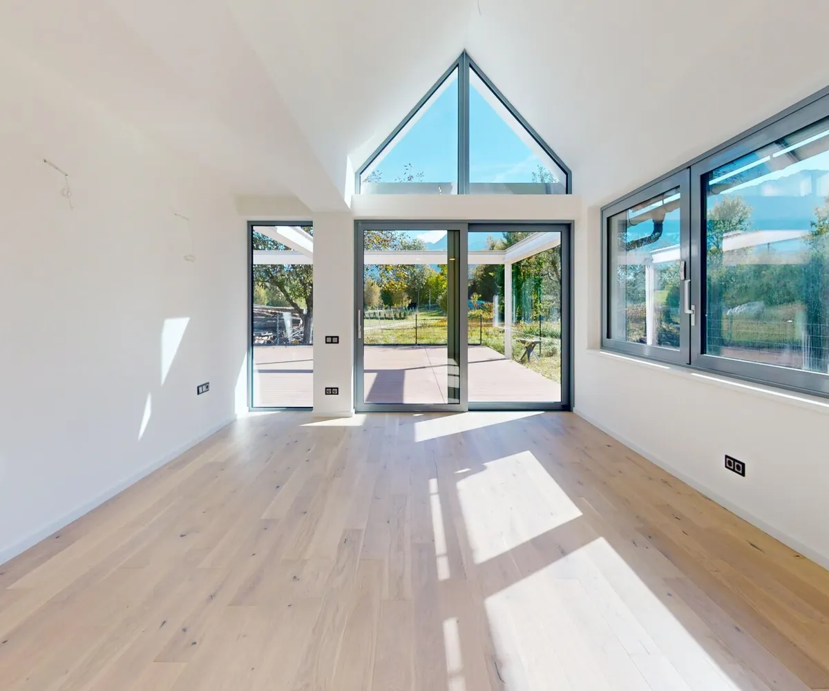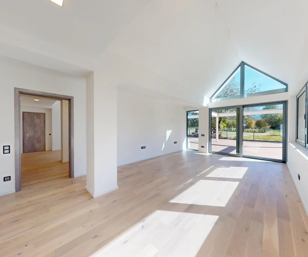 Großzügige Schiebetüre mit großer Fensterfläche zur Terrasse