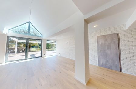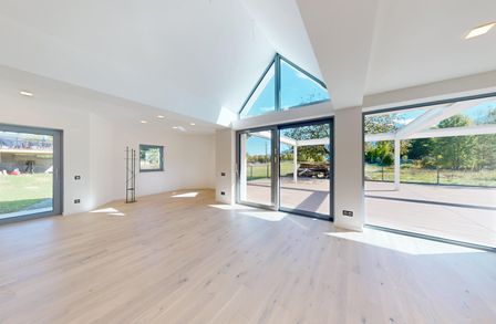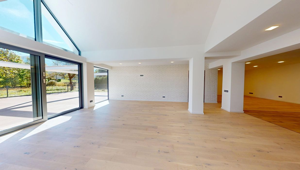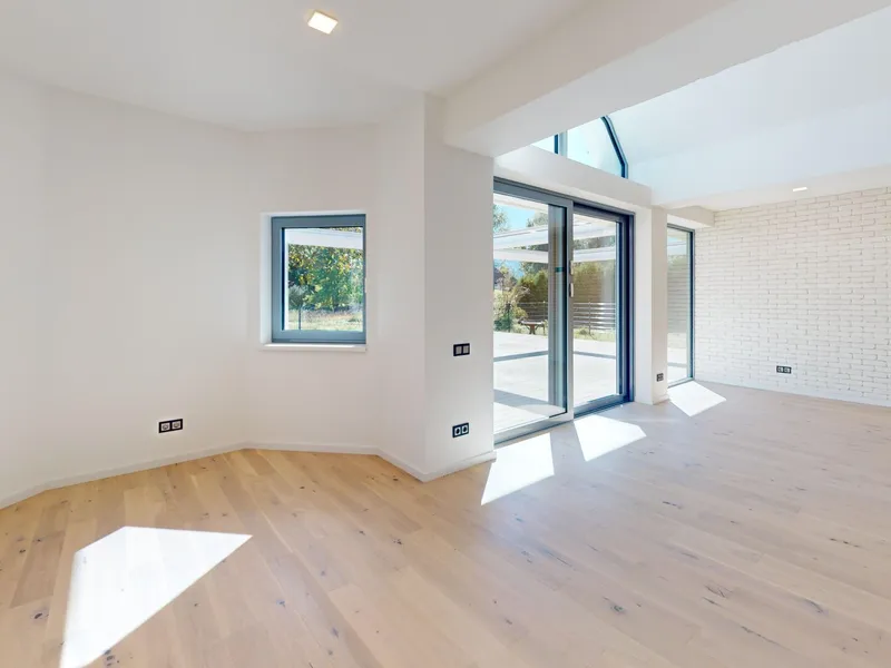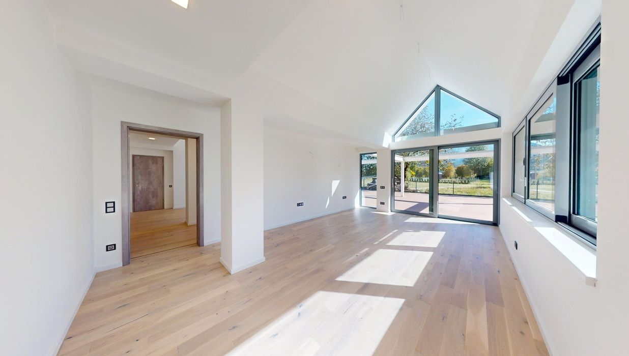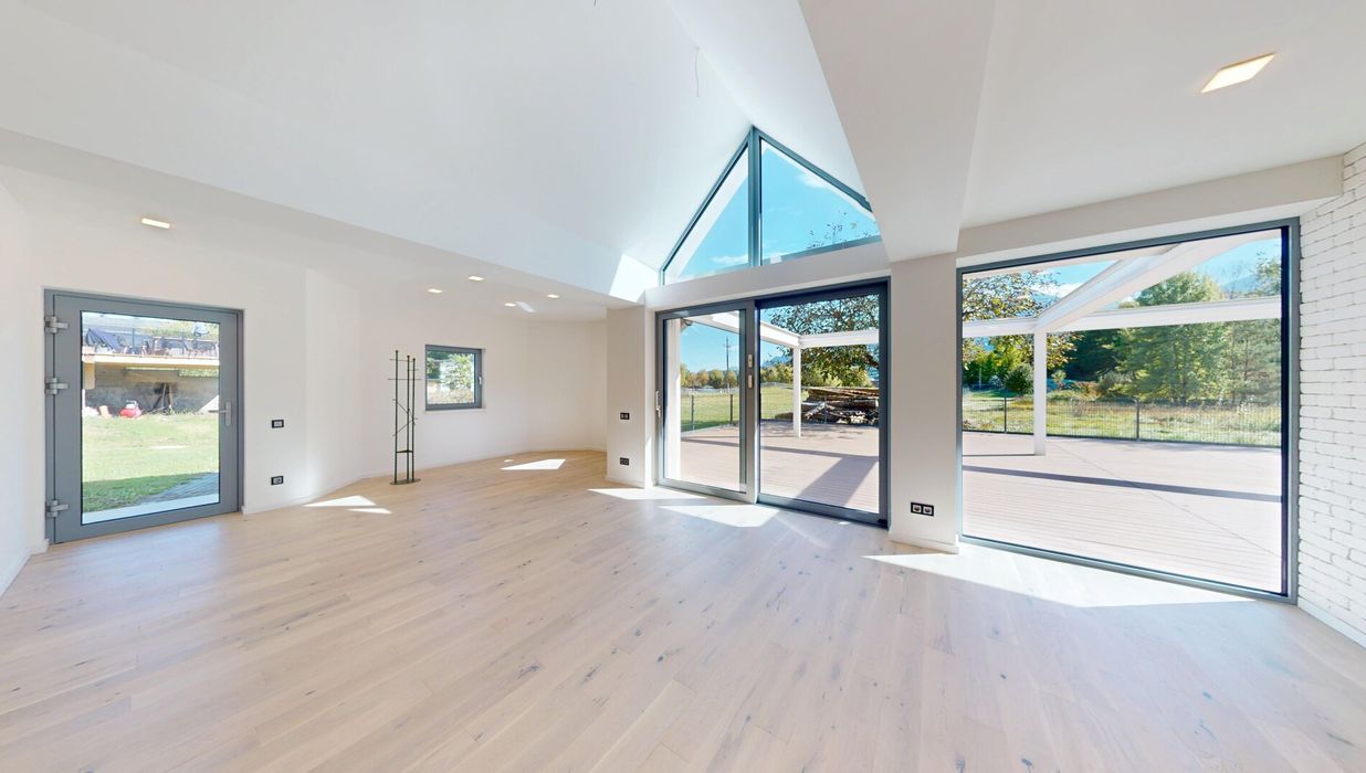 Großzügige Schiebetüre mit großer Fensterfläche zur Terrasse
