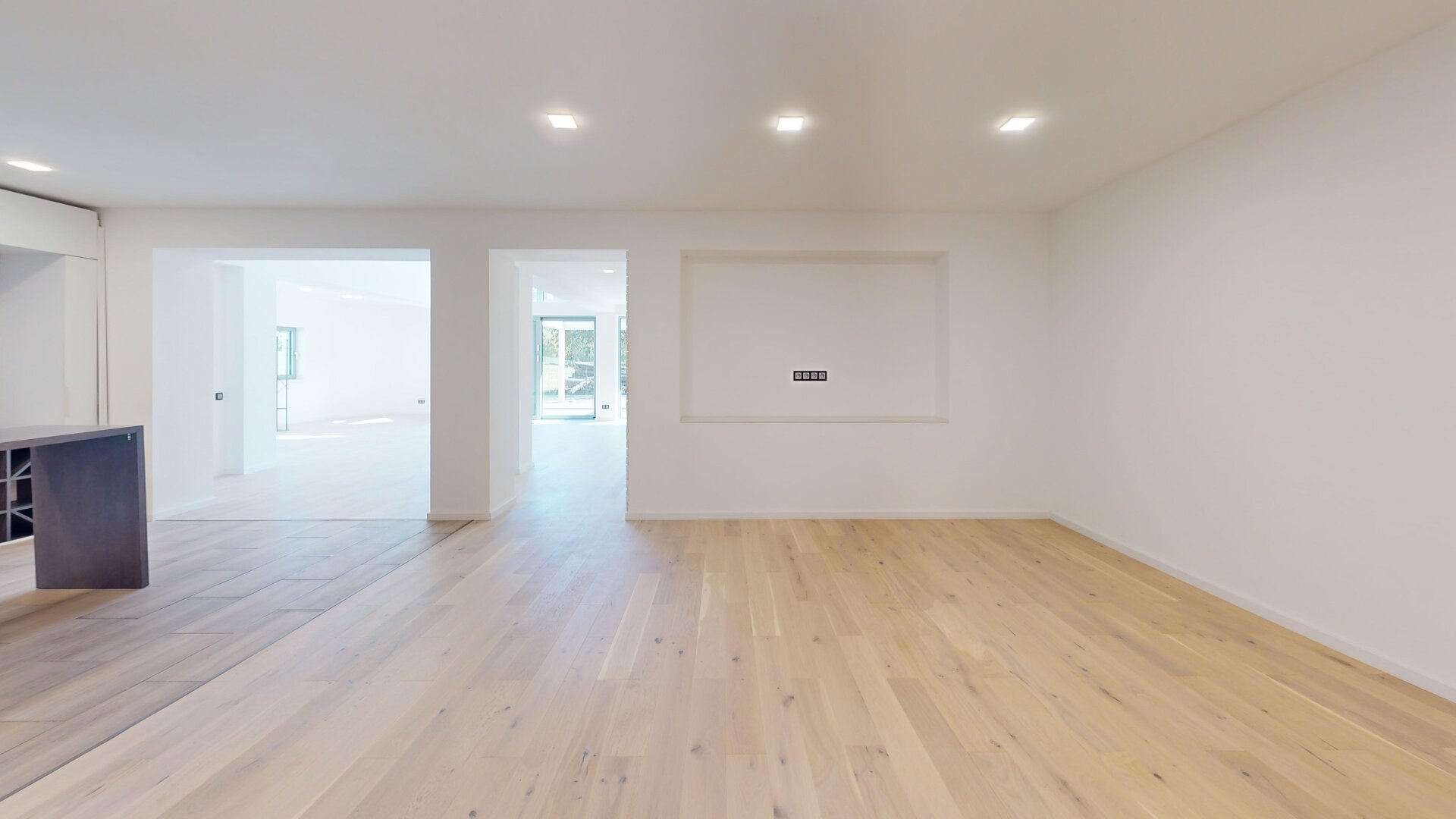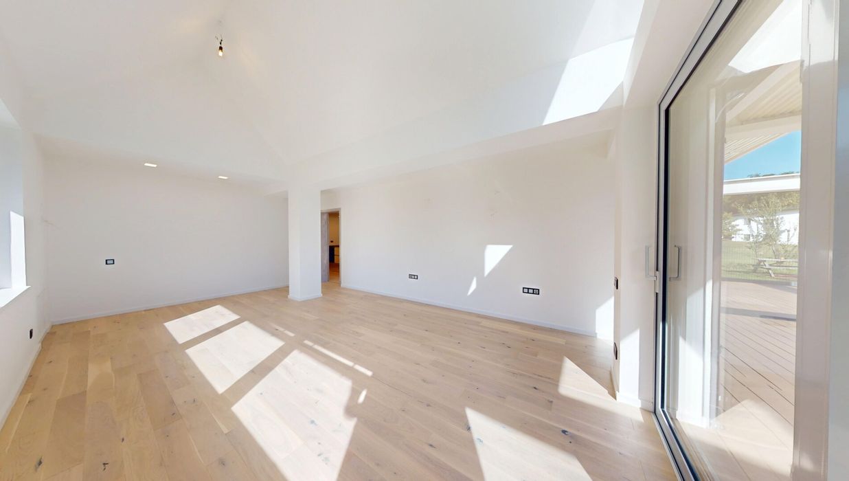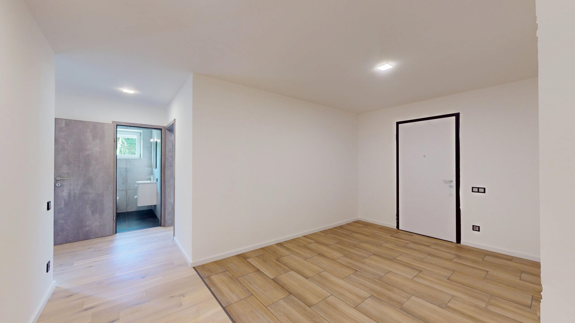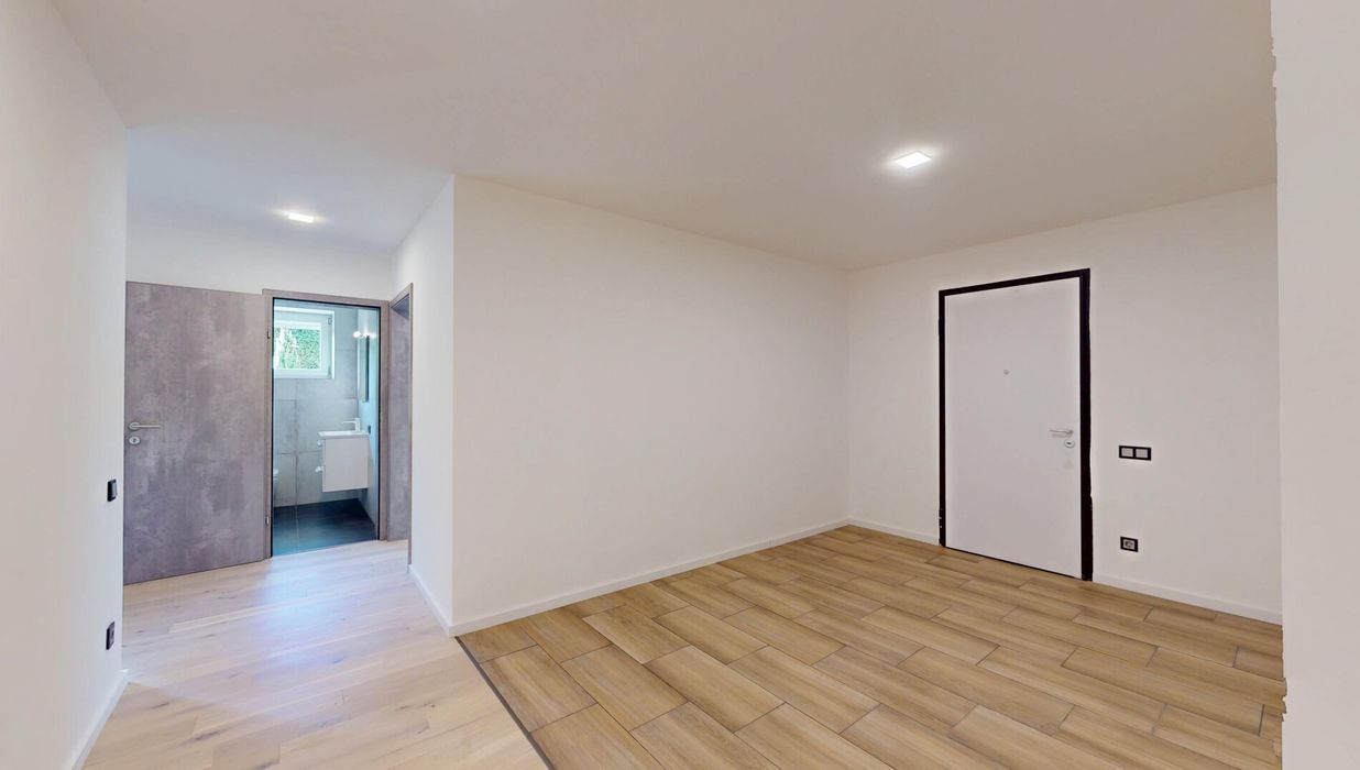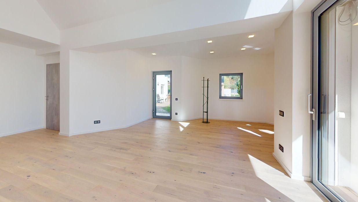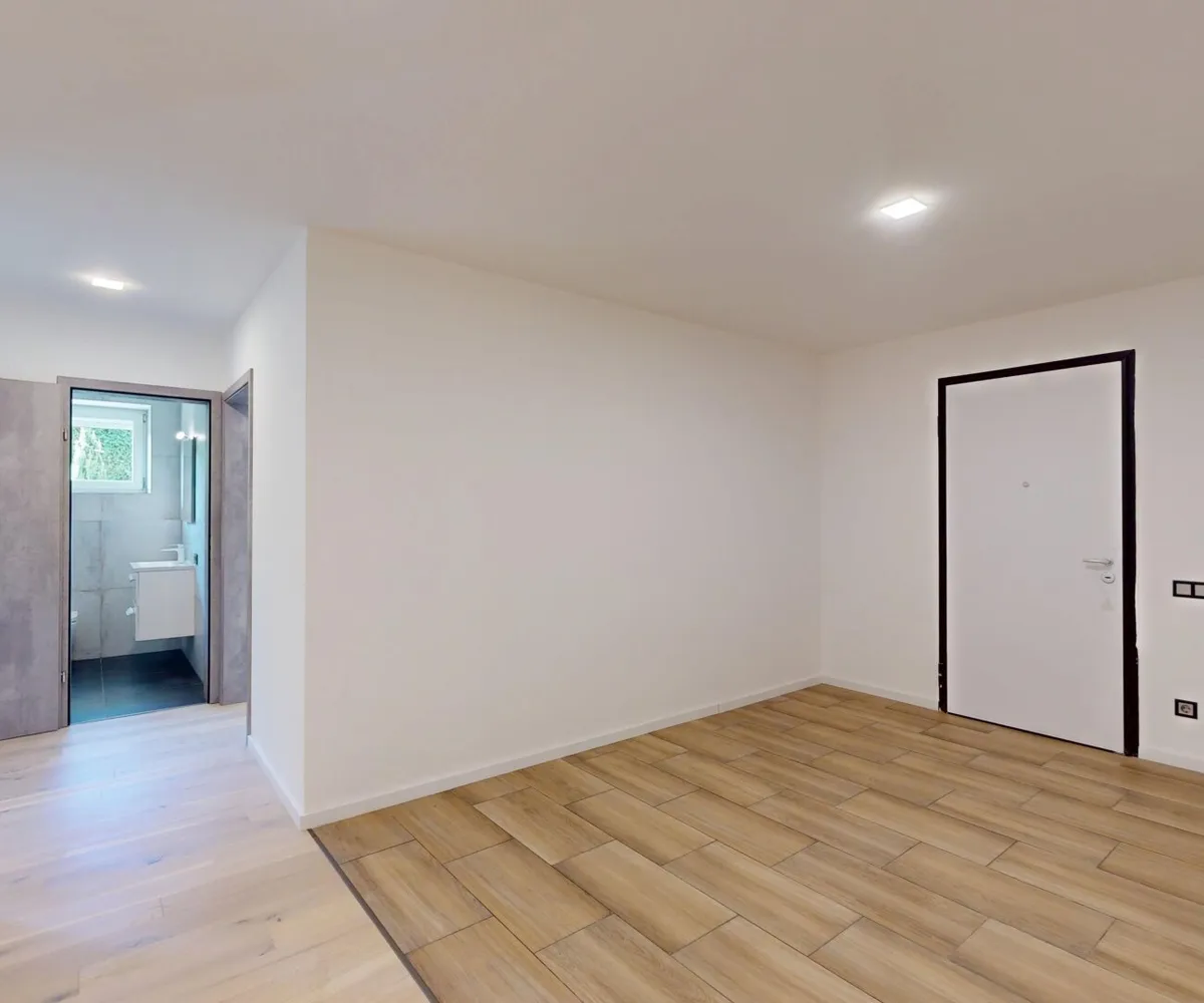 Die Wohnung wurde 2025 umfassend umgebaut und grundsaniert – sämtliche Leitungen sowie Fenster wurden erneuert, ebenso die Wohnungstür. Eine große bodentiefe Schiebetür öffnet den Wohnbereich zur Terrasse hin und sorgt für ein helles, offenes Wohngefühl.