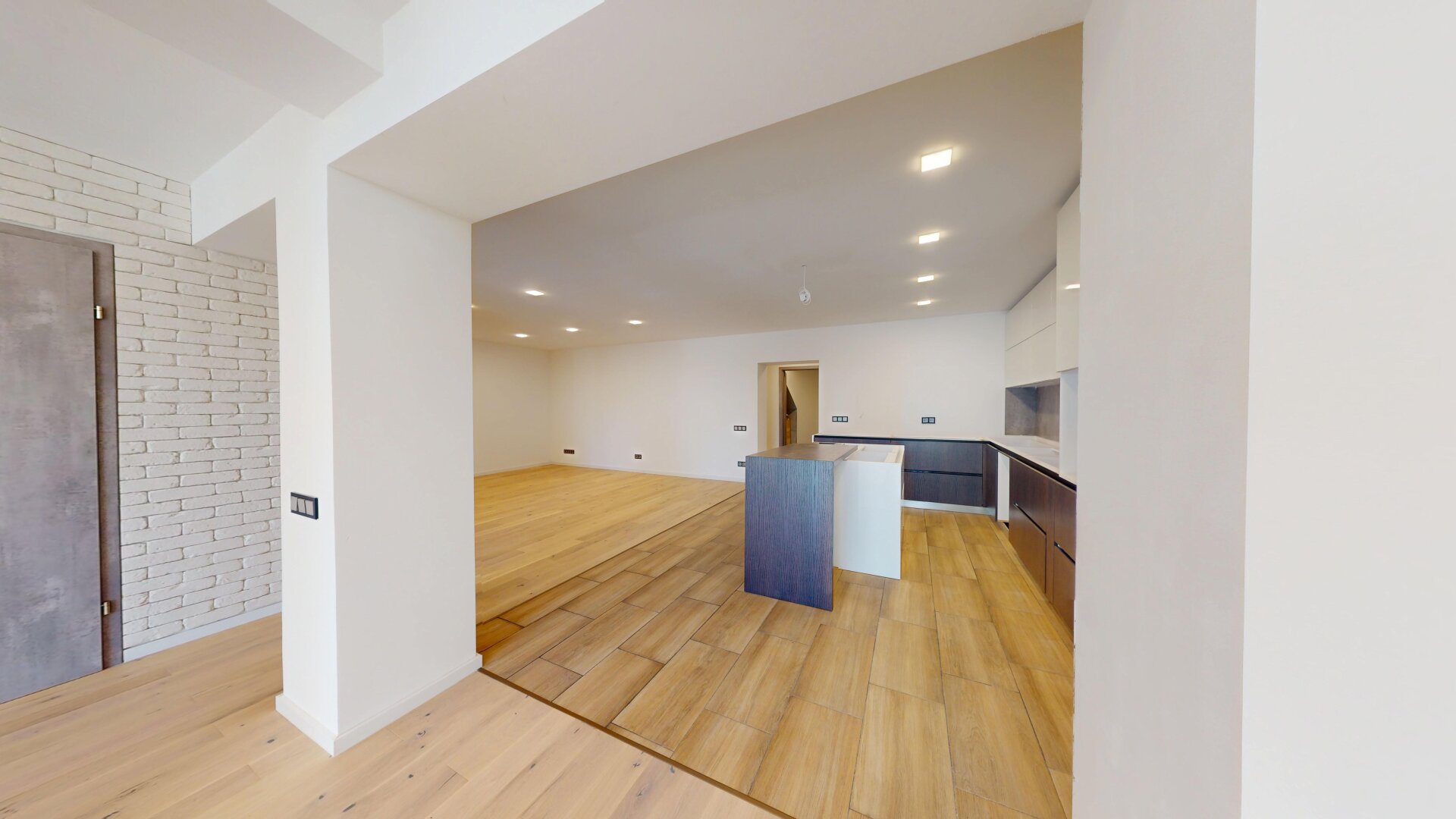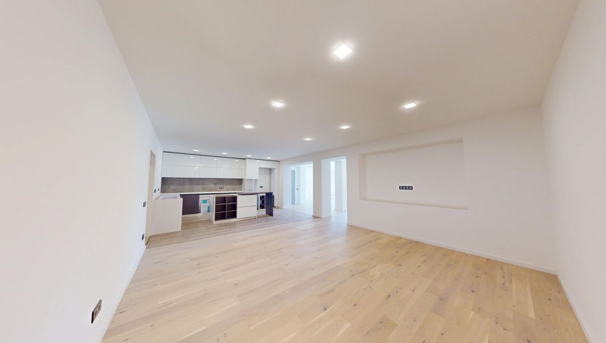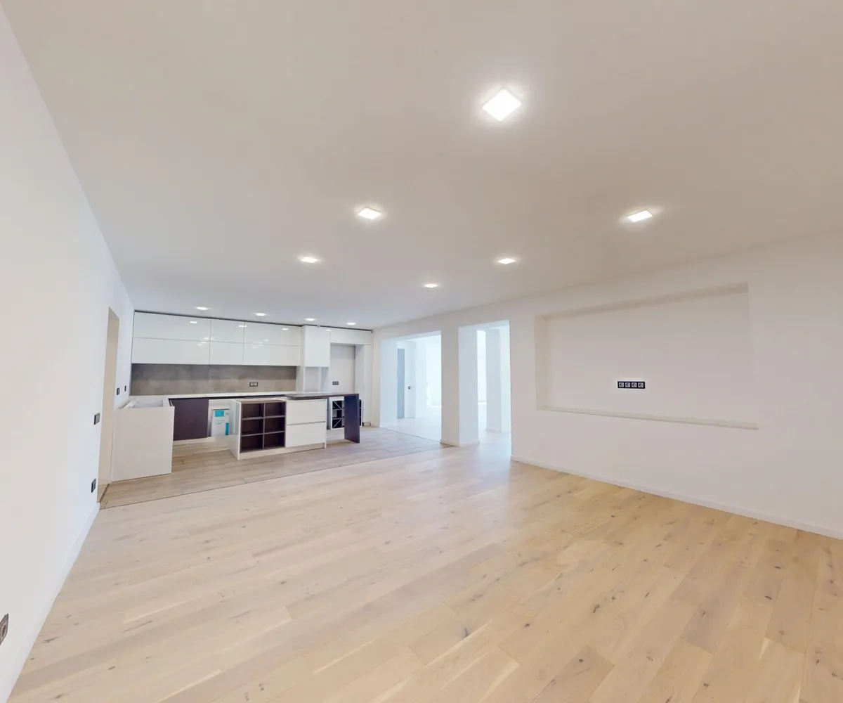 Die Wohnung verfügt über drei Schlafzimmer sowie ein großzügiges Wohn- und Esszimmer mit moderner Einbauküche . Die Arbeitsfläche und die Küchengeräte können vom Käufer individuell gewählt und nach eigenem Geschmack gestaltet werden.