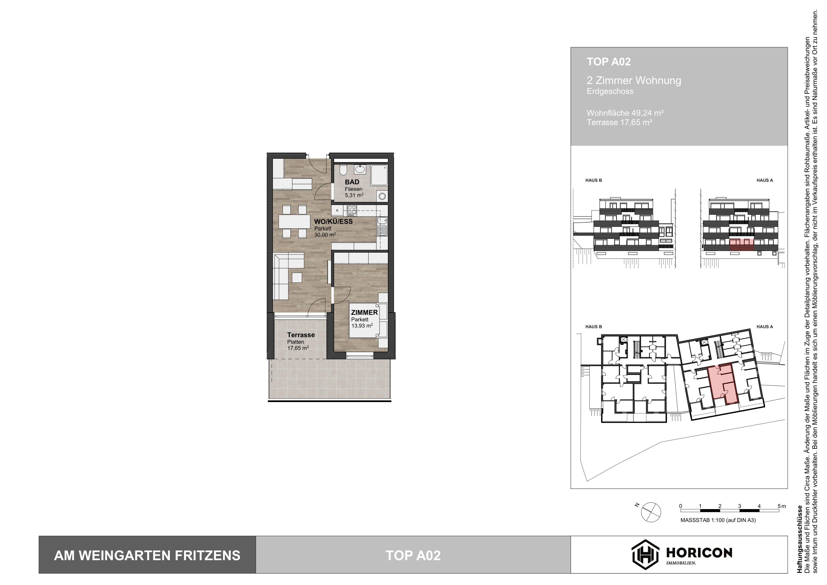 Diese attraktive 2-Zi-Wohnung befindet sich im Erdgeschoß des A-Hauses und bietet auf ca. 49 m² Wohnnutzfläche ein ideales Zuhause für Singles oder Paare. Die gut geschnittene Wohnung überzeugt durch eine gelungene Raumaufteilung und einen direkten Zugang zu einer großzügigen Terrasse sowie einem eigenen Kiesgarten.