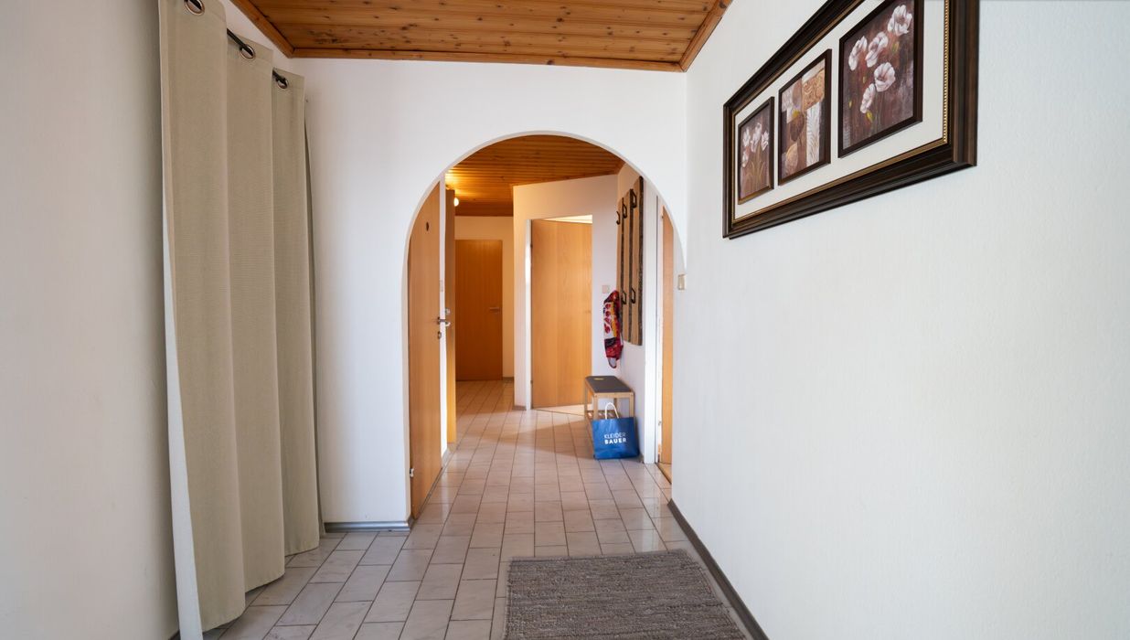 Lage? Die Lage verbindet Ruhe und Infrastruktur in idealer Weise: Die Wohnung befindet sich in einer versteckten Seitenstraße, nur wenige Minuten zu Fuß von Apotheke, Post, Bahnhof, Bank, Restaurants und Supermarkt entfernt - ebenso wie Kindergarten, Schule und Gemeindeamt.