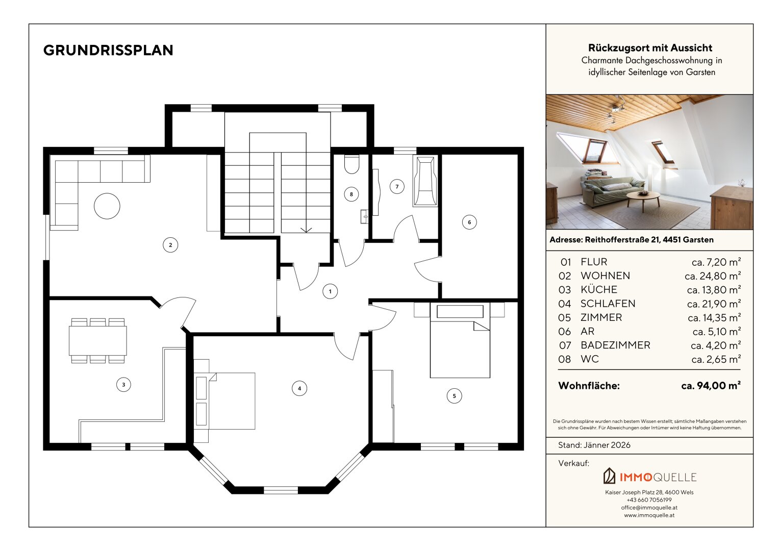 Willkommen über den Dächern von Garsten - in einer Wohnung, die mit Licht, Ruhe und liebevoll gestalteten Details überzeugt. Im dritten Stock eines gepflegten Wohnhauses und ruhig im Hinterhaus gelegen, erwartet Sie auf rund 94 m² Wohnfläche ein Zuhause, das Funktionalität und Wohlgefühl auf harmonische Weise verbindet - ideal für Paare, Familien oder Menschen, die Wohnen und Arbeiten stilvoll vereinen möchten.