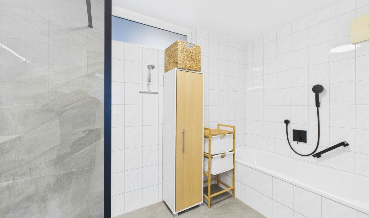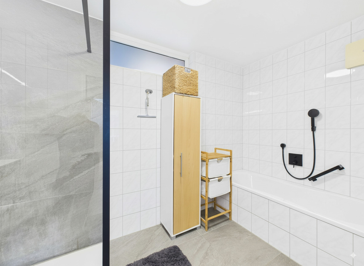 Zudem erwarten Sie hochwertige Materialien wie Fliesen und Parkett, die nicht nur stilvoll, sondern auch pflegeleicht sind. Die Fußbodenheizung sorgt in der kalten Jahreszeit für ein angenehmes Wohnklima und höchsten Komfort.