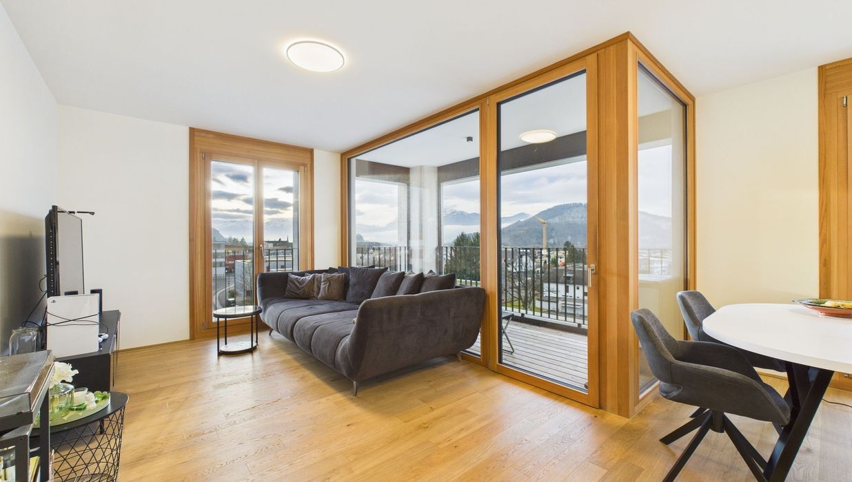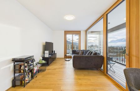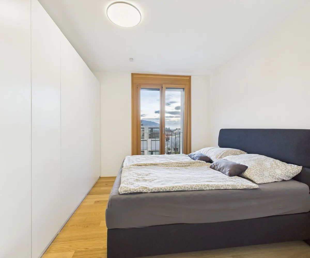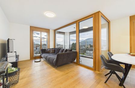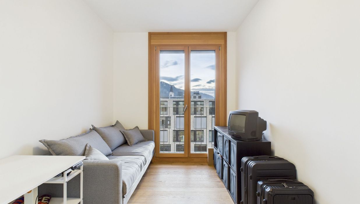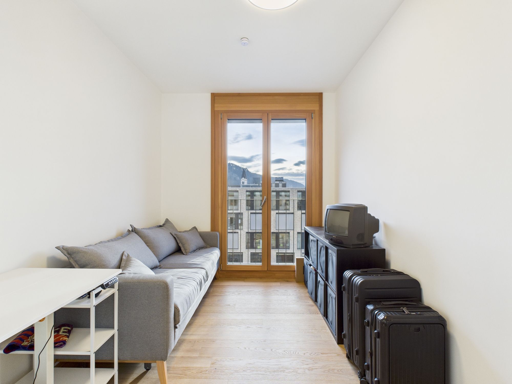 Die Wohnung liegt im 2024 fertiggestellten Komplex nördlich des Garnmarktes. Als lebendiger Treffpunkt profitieren Sie von kurzen Wegen, urbaner Infrastruktur und hoher Lebensqualität. Ergänzend besticht die Wohnung durch eine schöne Aussicht auf die umliegende Bergwelt.