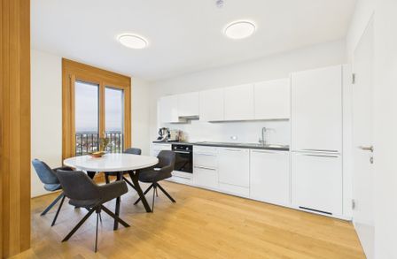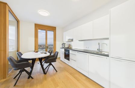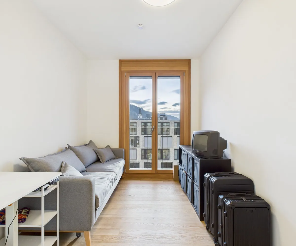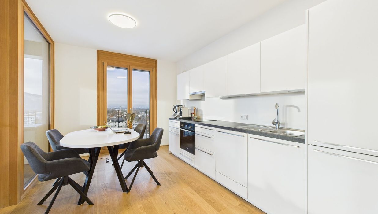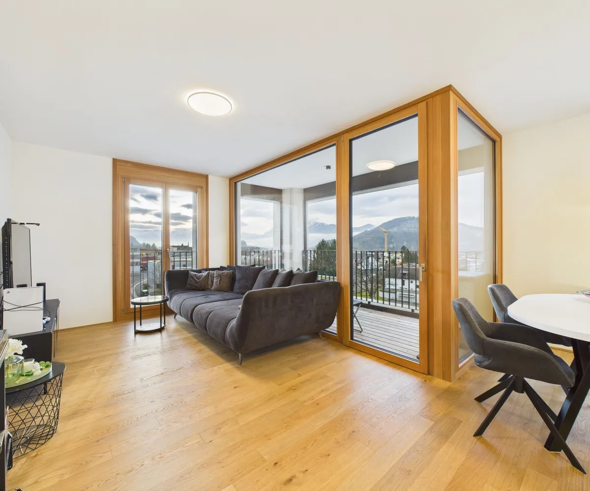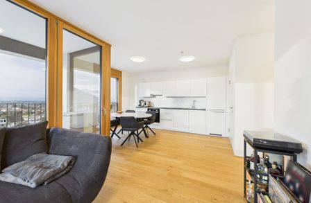 Die Wohnung liegt im 2024 fertiggestellten Komplex nördlich des Garnmarktes. Als lebendiger Treffpunkt profitieren Sie von kurzen Wegen, urbaner Infrastruktur und hoher Lebensqualität. Ergänzend besticht die Wohnung durch eine schöne Aussicht auf die umliegende Bergwelt.