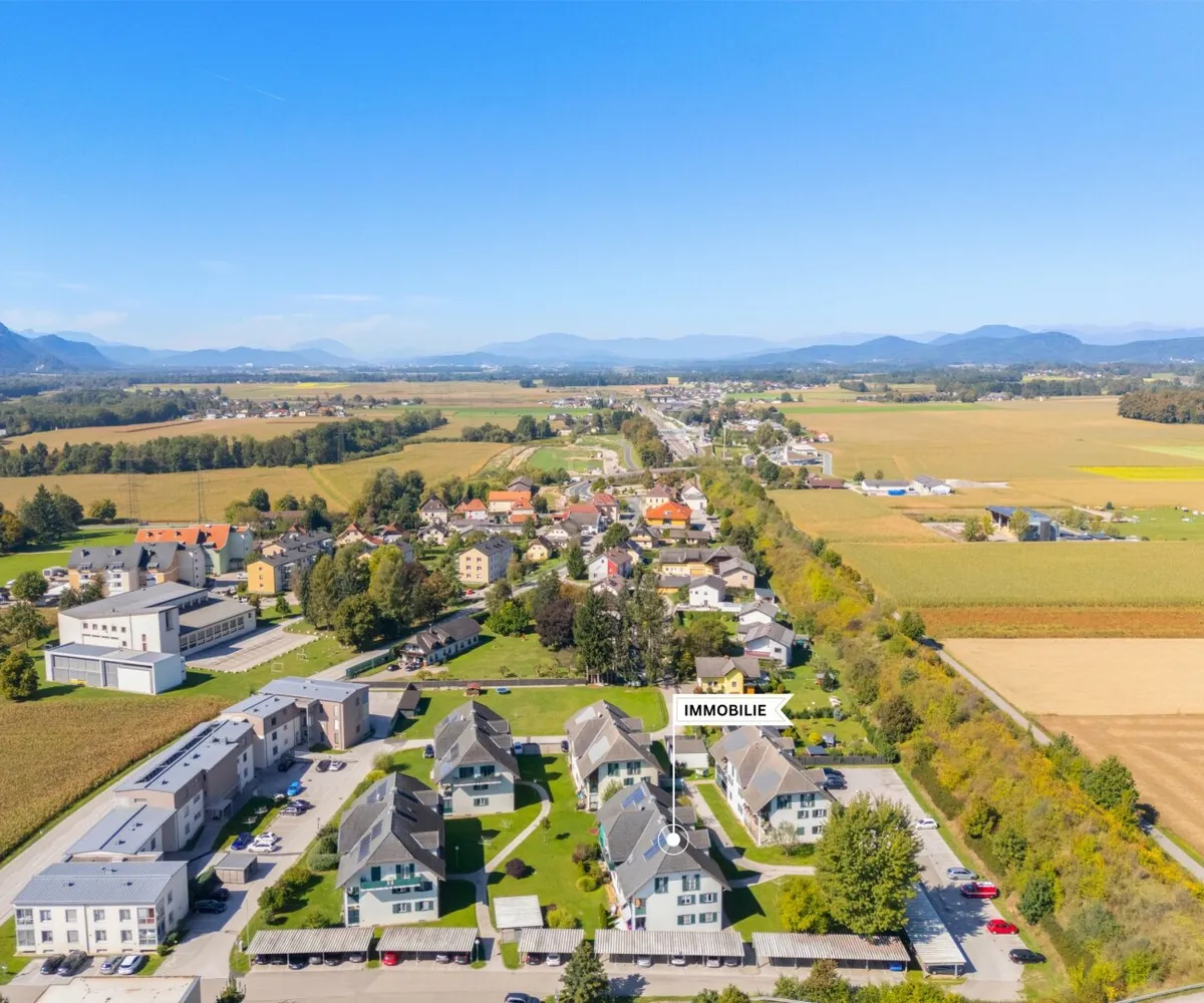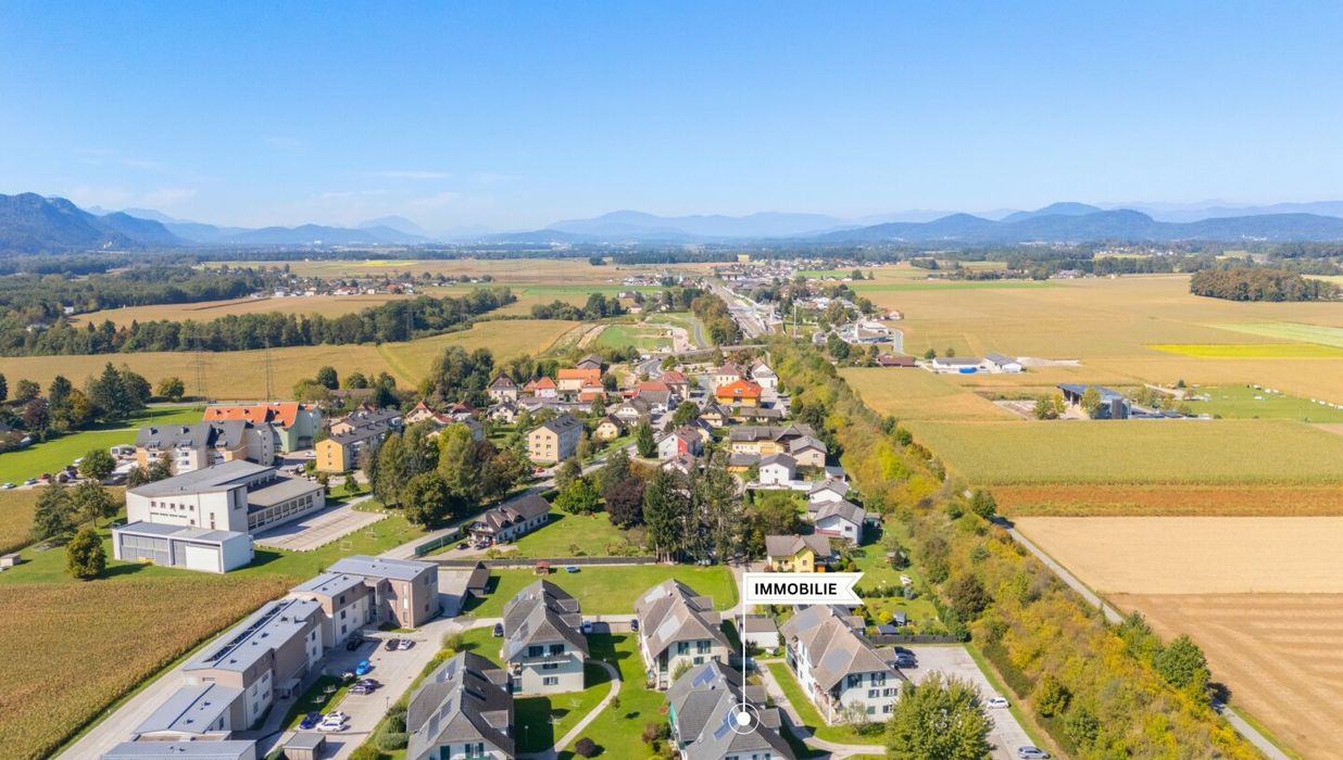 Nähe: Einkaufen, Bank, Ärzte, Apotheke, Volksschule, Kindergarten, sowie Bus- und Bahnhaltstelle, alles in der Nähe! Nur ca. 10 Automin. nach Klagenfurt.