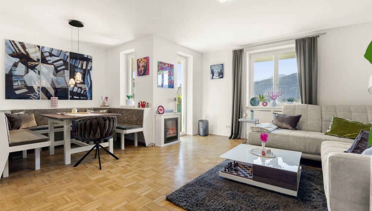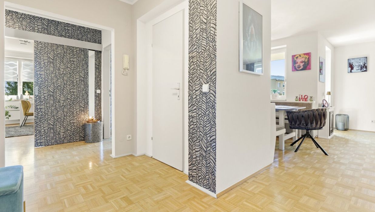 Moderne, schöne und sonnendurchflutete 4 Zimmer Wohnung mit ca. 99,70m² plus ca. 14,90m² XL-Südbalkon mit herrlichen Panoramablick. Genießen Sie die Sonnenstunden auf dem schönen Südbalkon und das großzügige Wohnraumangebot mit folgender Raumaufteilung. Vorraum/Diele (12,34m²), 1 großes Wohn-/Esszimmer (27,89m²) mit XL-Südbalkon (14,90m²), 1 neue Wohnküche mit Geräten (9,20m²), 1 Elternschlafzimmer (18,73m²) mit Ausgang zum Balkon, 1 Kinderzimmer (13,60m²), 1 Zimmer (10,20m²), 1 neues Bad mit barrierefreier Dusche und Fenster (4,78m²), 1 WC extra (1,44m²) und 1 Abstellraum (1,52m²). Alle Angaben und Flächenangaben lt. Plan und Nutzwertgutachten ohne Gewähr! Änderungen und Irrtümer sind vorbehalten!