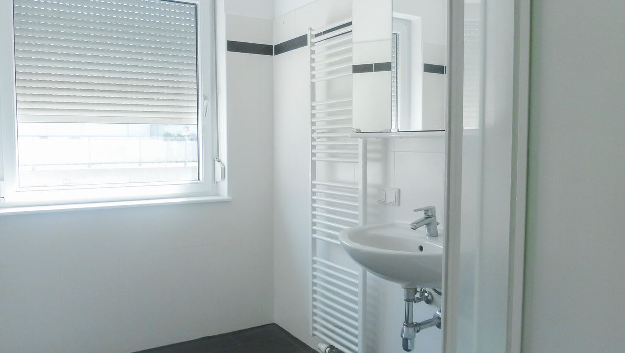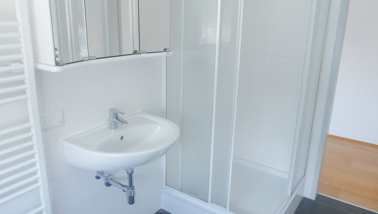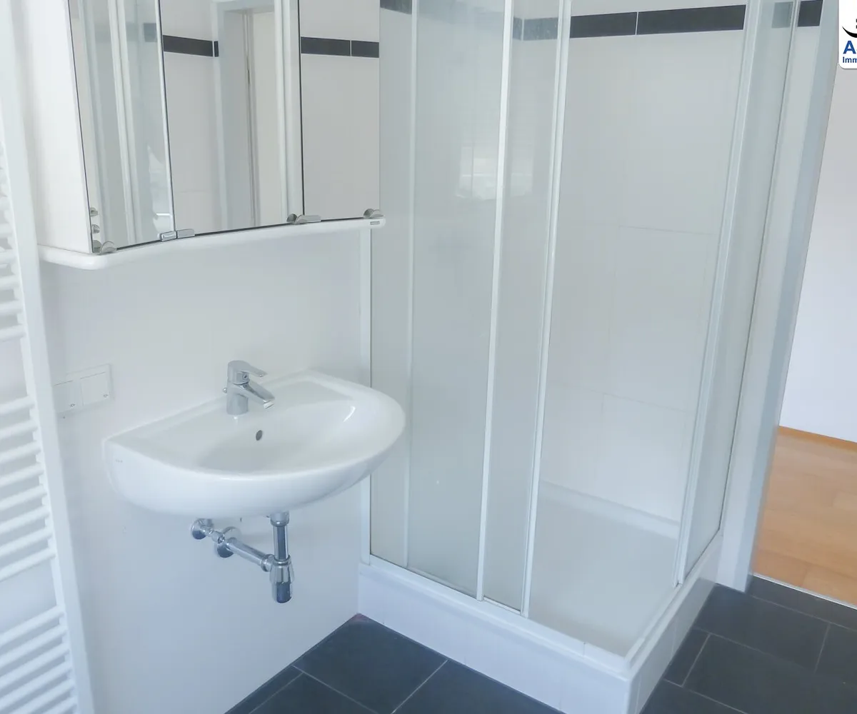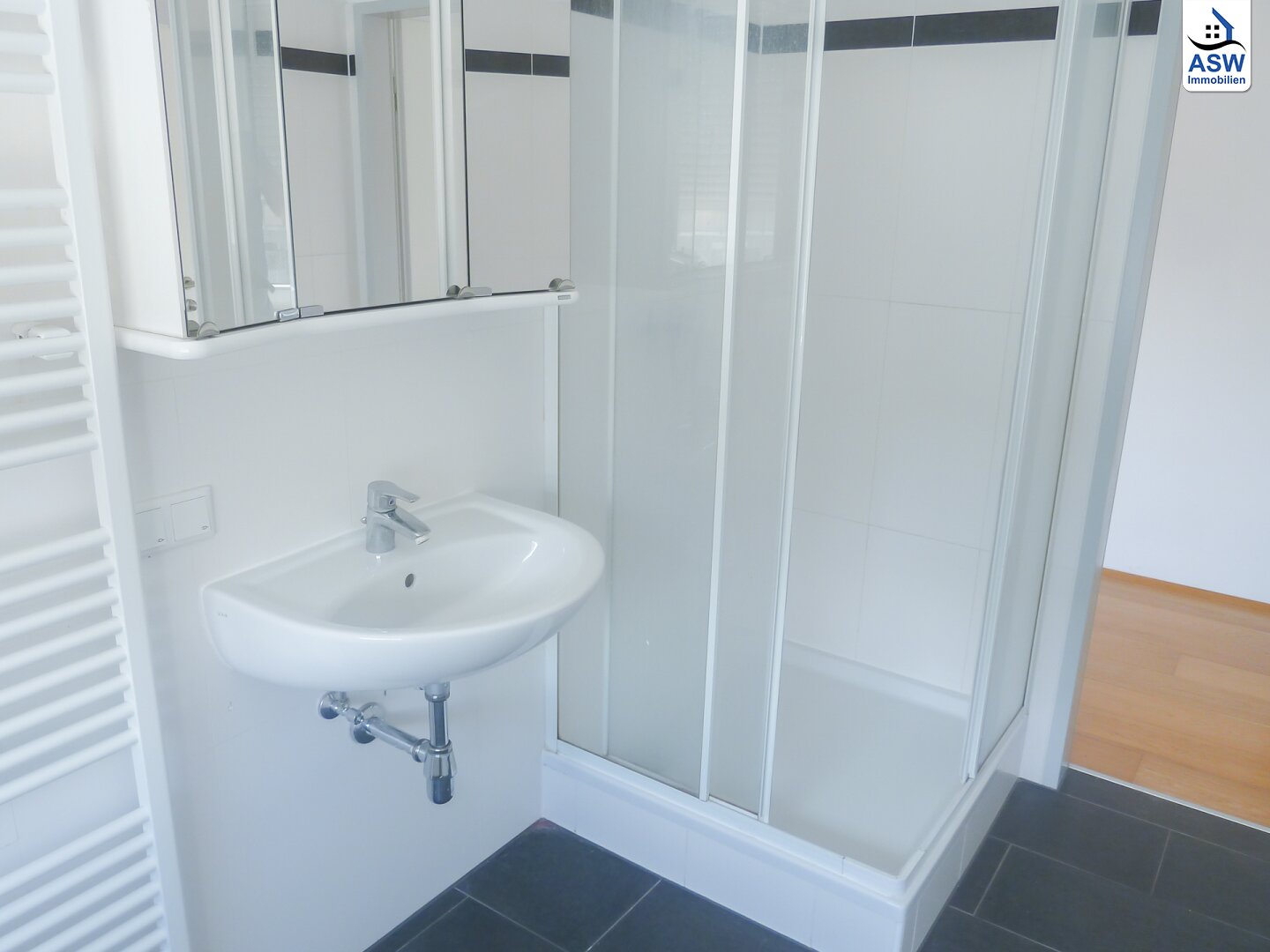 - Badezimmer mit Dusche und Waschmaschinenanschluss