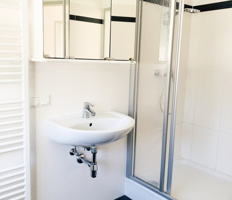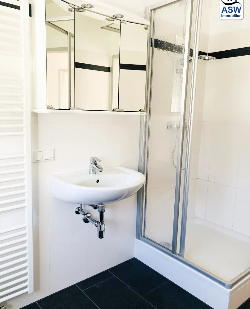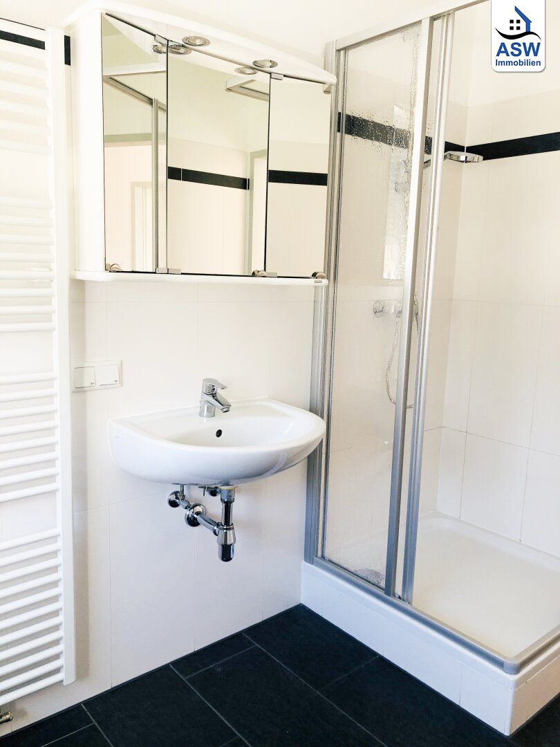 - Badezimmer mit Dusche und Waschmaschinenanschluss,
