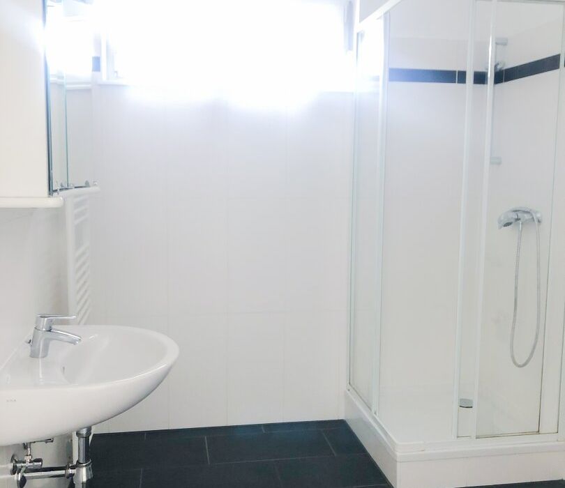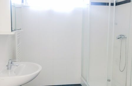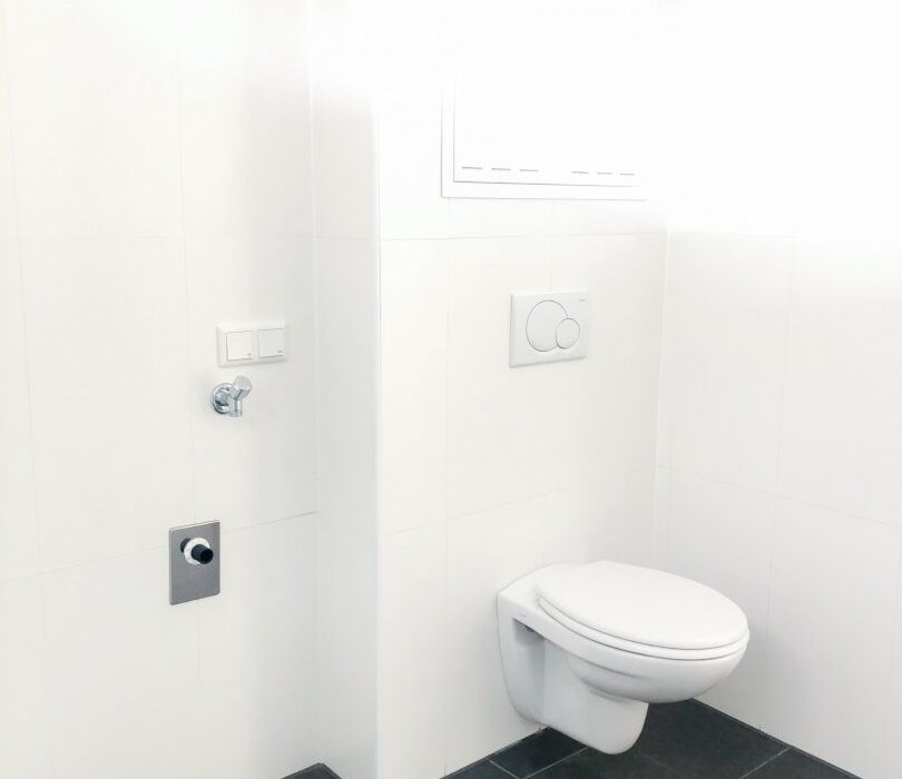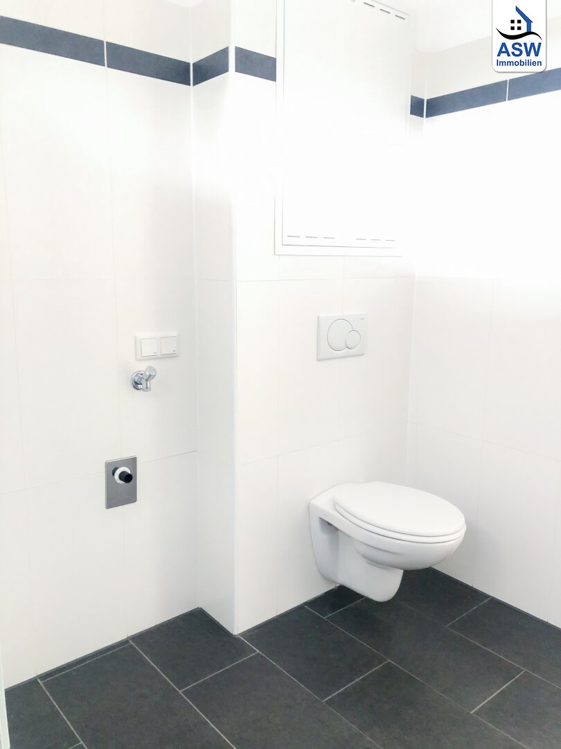 - Badezimmer mit Badewanne, WC und Waschmaschinenanschluss