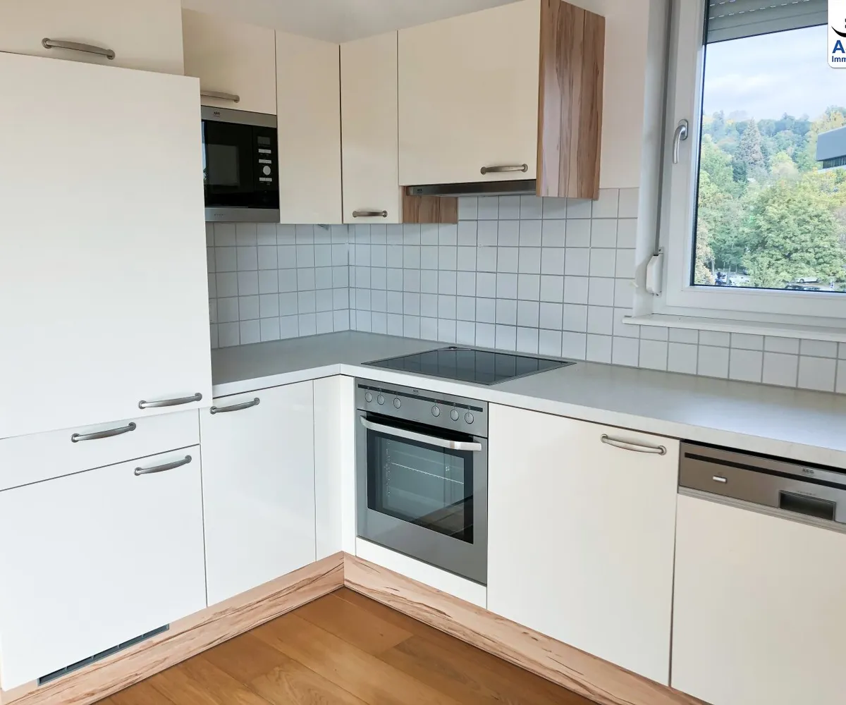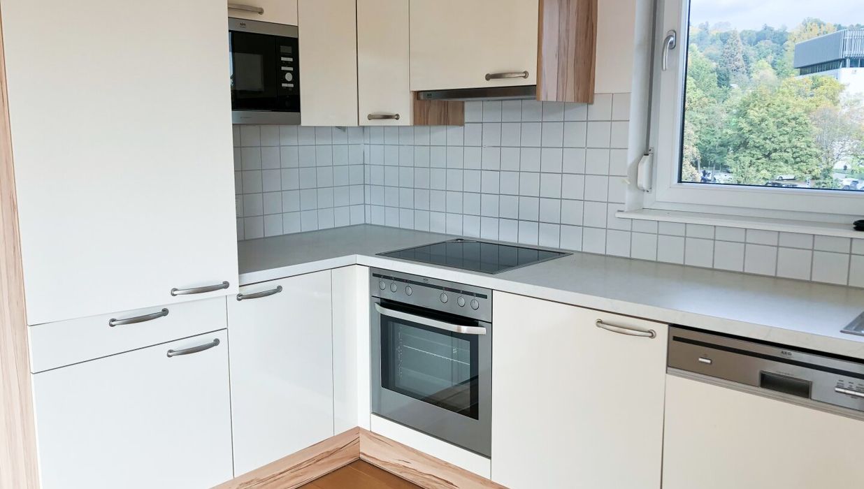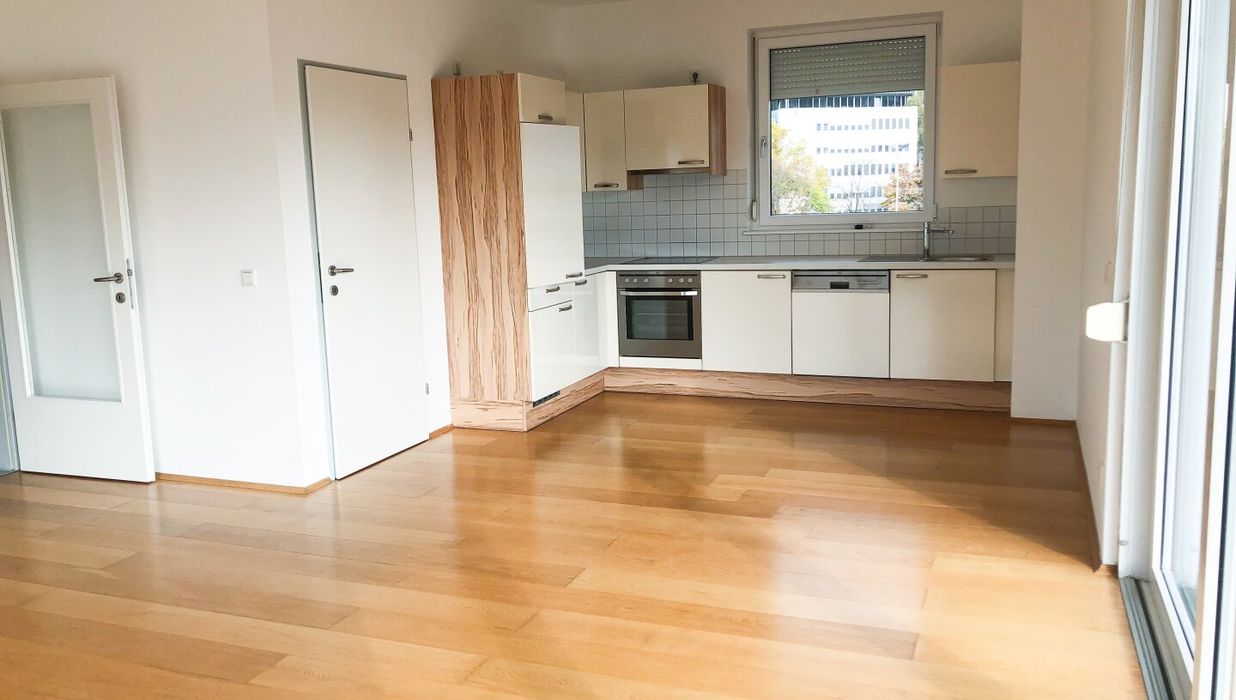 - Wohn-/Essbereich mit angrenzender Komplettküche inkl. E-Geräten und Abstellraum