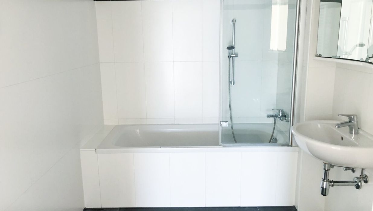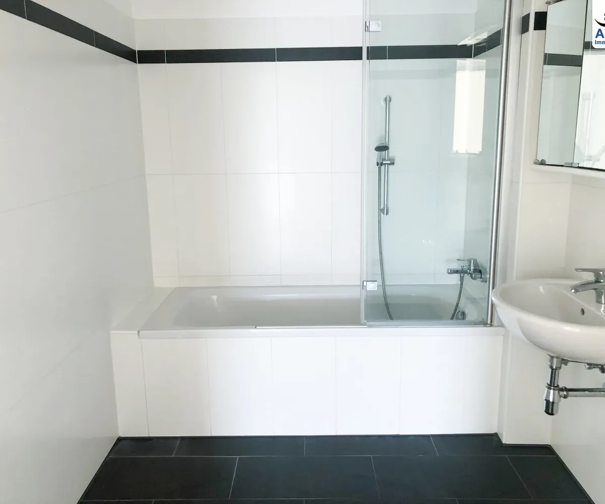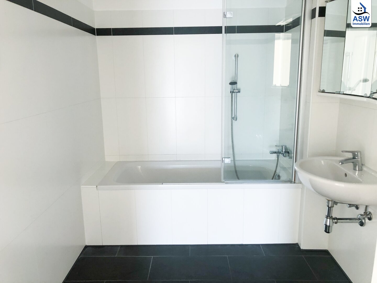 - Badezimmer mit Badewanne und Waschmaschinenanschluss