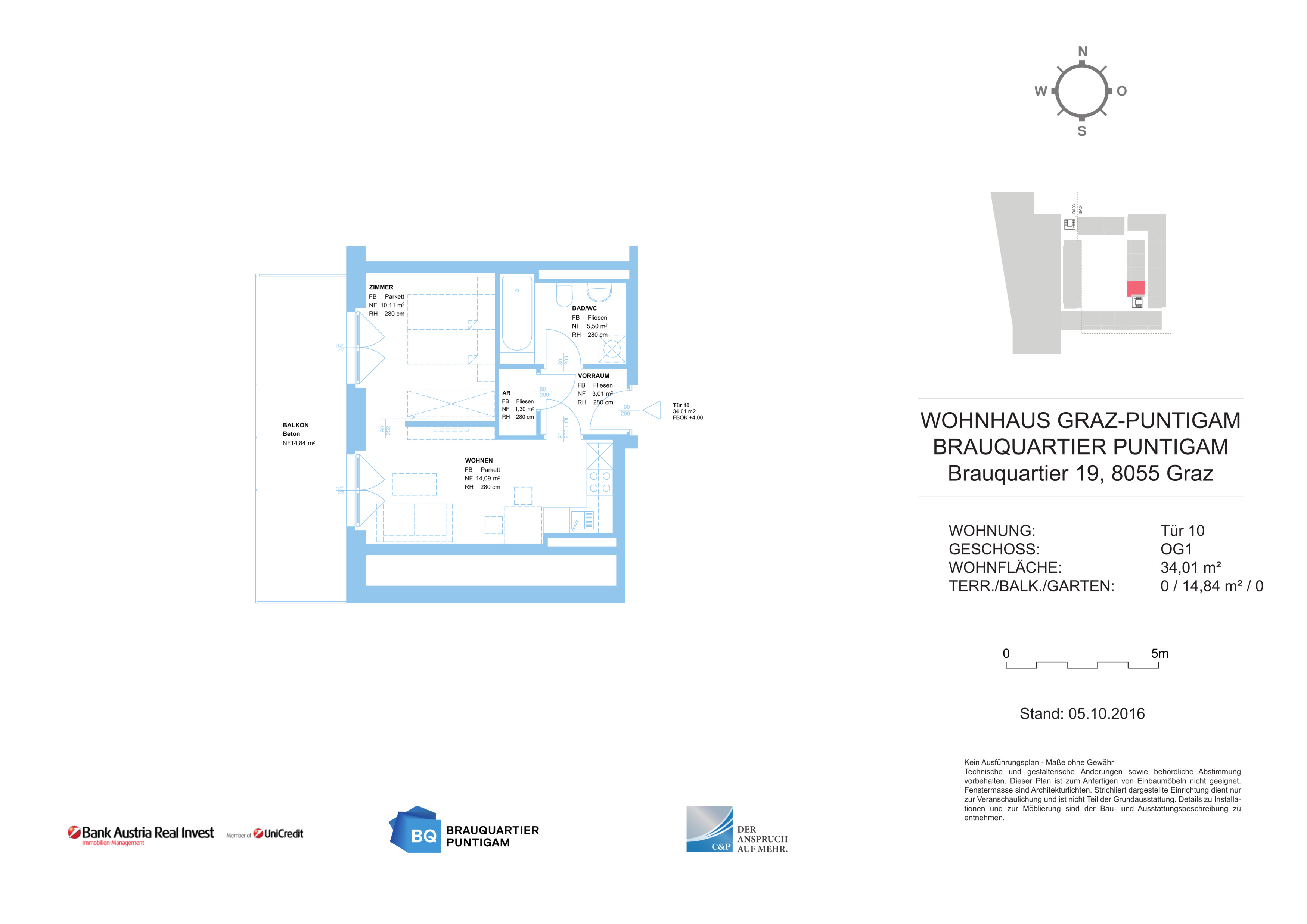Die Wohnung selbst befindet sich in der 1.Etage und verfügt über eine Wohnküche, einem separat begehbaren Schlafzimmer, ein Badezimmer mit Badewanne, Waschmaschinenanschluss und WC, einen Abstellraum, sowie einen Vorraum. Der rund 15m² große Balkon rundet das Wohnerlebnis perfekt ab.