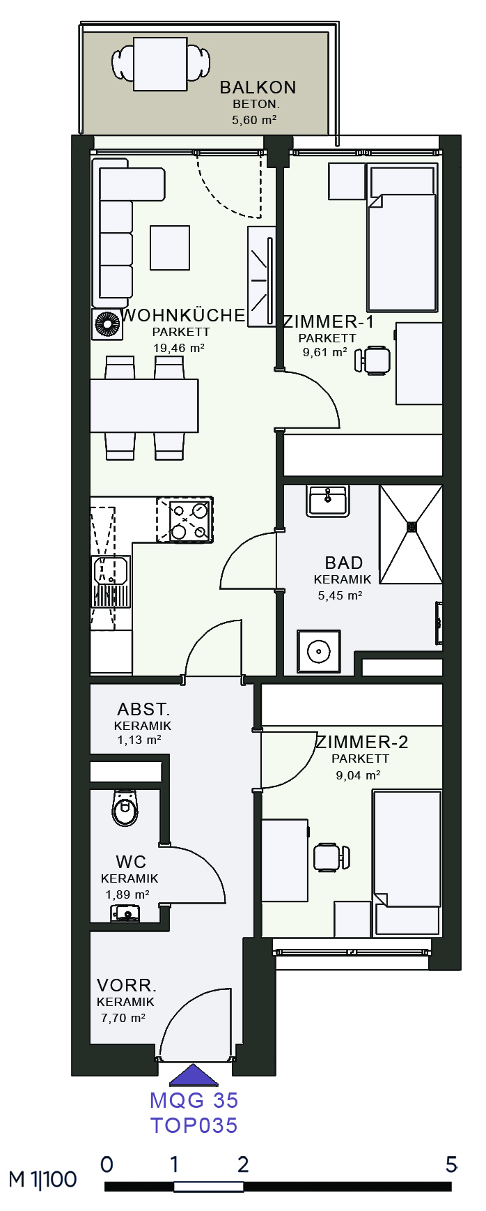 Das MQG wird als siebengeschossige bis zehngeschossige Hofstruktur realisiert und überzeugt durch eine hochwertige architektonische Umsetzung. Die vier Baukörper sind jeweils zweihüftig organisiert und über großzügige, bis zu acht Meter breite Längsatrien erschlossen, die als kommunikative Begegnungszonen dienen. Dank transparenter Glasüberdachungen sind diese Bereiche wettergeschützt und gleichzeitig lichtdurchflutet, wodurch eine angenehme Atmosphäre entsteht. Zudem ermöglicht dieses Konzept eine optimale Querlüftung aller Wohnungen.