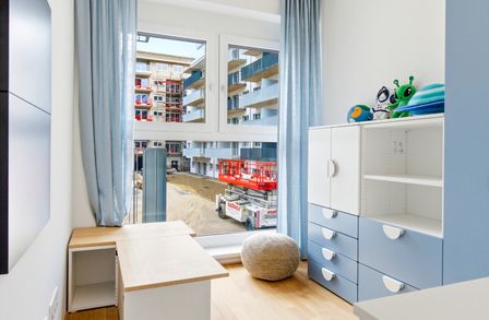 Die Wohnungen bieten hochwertige Ausstattungsdetails wie Parkett- oder Keramikböden, maßgefertigte Einbauküchen, Fußbodenheizung über Fernwärme, eigene Kellerabteile sowie private Außenflächen in Form von Balkonen oder Gärten. Sämtliche Einheiten sind barrierefrei über Aufzüge oder überdachte Erschließungswege zugänglich.