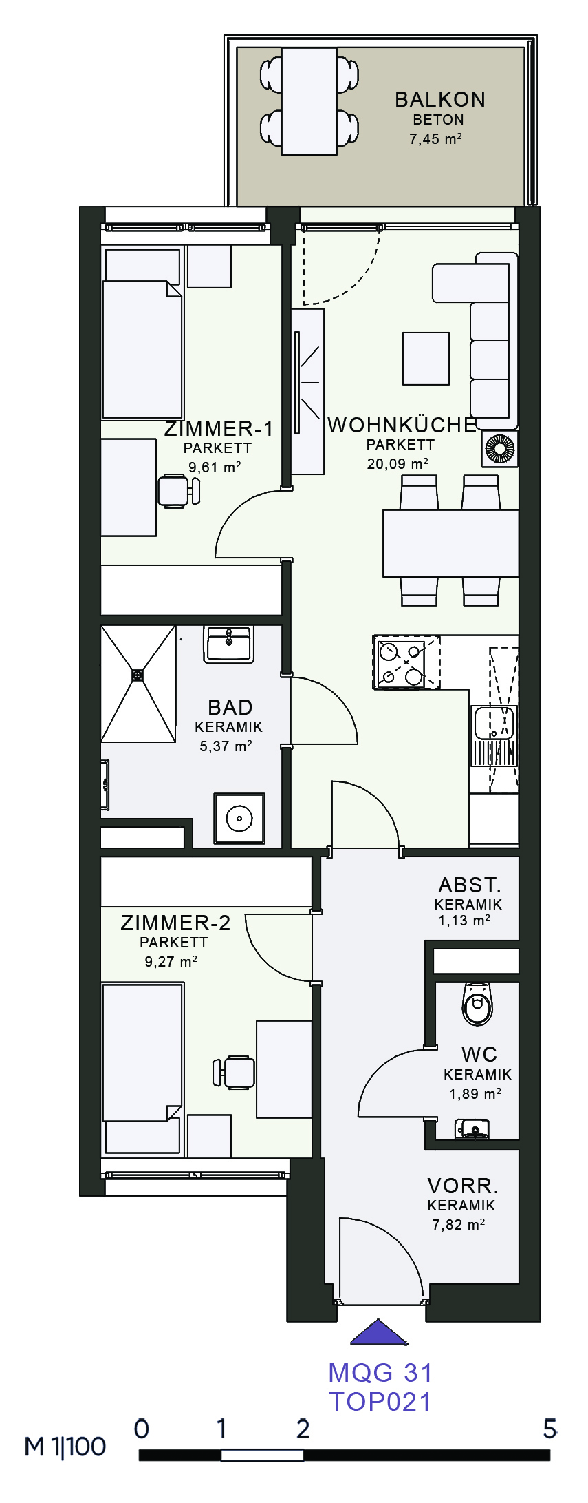 Das MQG wird als siebengeschossige bis zehngeschossige Hofstruktur realisiert und überzeugt durch eine hochwertige architektonische Umsetzung. Die vier Baukörper sind jeweils zweihüftig organisiert und über großzügige, bis zu acht Meter breite Längsatrien erschlossen, die als kommunikative Begegnungszonen dienen. Dank transparenter Glasüberdachungen sind diese Bereiche wettergeschützt und gleichzeitig lichtdurchflutet, wodurch eine angenehme Atmosphäre entsteht. Zudem ermöglicht dieses Konzept eine optimale Querlüftung aller Wohnungen.