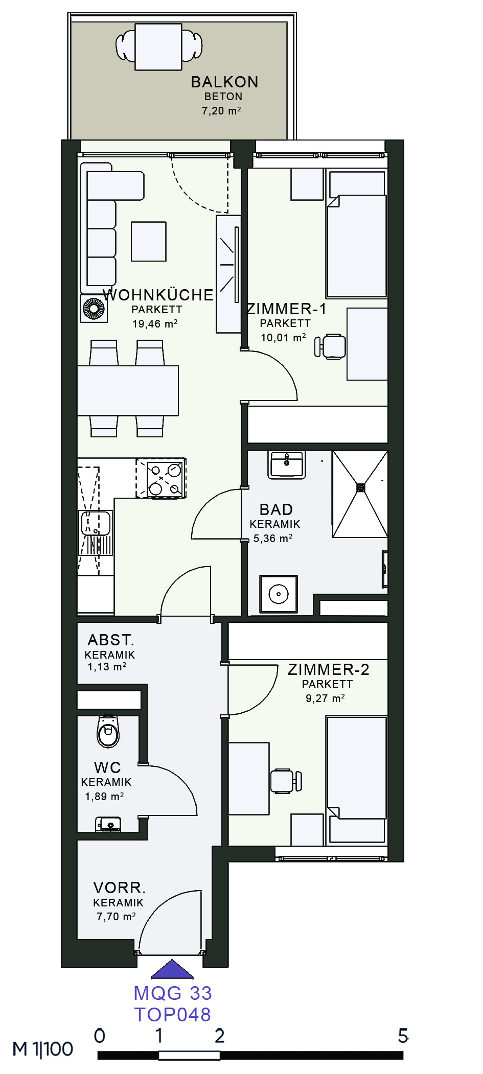 Das MQG wird als siebengeschossige bis zehngeschossige Hofstruktur realisiert und überzeugt durch eine hochwertige architektonische Umsetzung. Die vier Baukörper sind jeweils zweihüftig organisiert und über großzügige, bis zu acht Meter breite Längsatrien erschlossen, die als kommunikative Begegnungszonen dienen. Dank transparenter Glasüberdachungen sind diese Bereiche wettergeschützt und gleichzeitig lichtdurchflutet, wodurch eine angenehme Atmosphäre entsteht. Zudem ermöglicht dieses Konzept eine optimale Querlüftung aller Wohnungen.