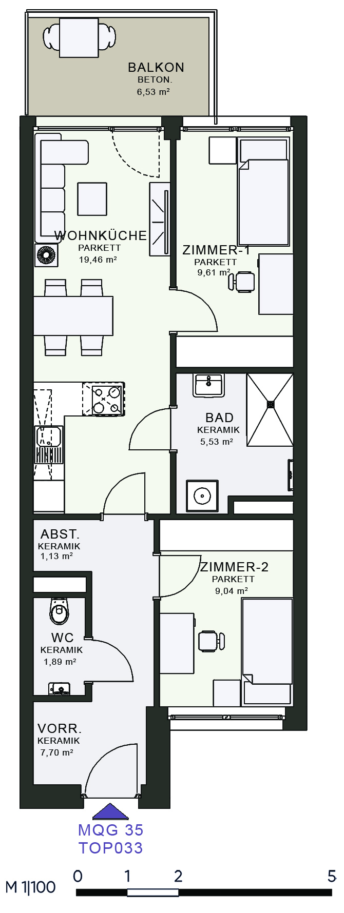 Das MQG wird als siebengeschossige bis zehngeschossige Hofstruktur realisiert und überzeugt durch eine hochwertige architektonische Umsetzung. Die vier Baukörper sind jeweils zweihüftig organisiert und über großzügige, bis zu acht Meter breite Längsatrien erschlossen, die als kommunikative Begegnungszonen dienen. Dank transparenter Glasüberdachungen sind diese Bereiche wettergeschützt und gleichzeitig lichtdurchflutet, wodurch eine angenehme Atmosphäre entsteht. Zudem ermöglicht dieses Konzept eine optimale Querlüftung aller Wohnungen.
