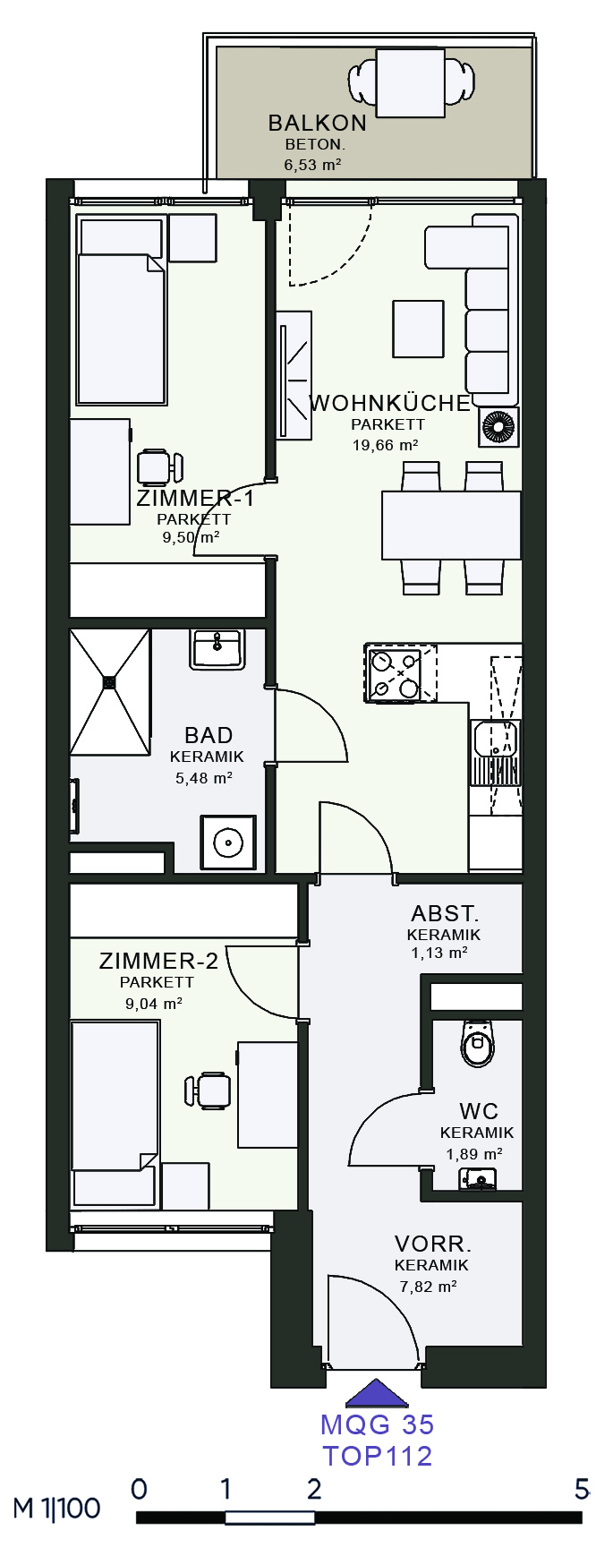 Das MQG wird als siebengeschossige bis zehngeschossige Hofstruktur realisiert und überzeugt durch eine hochwertige architektonische Umsetzung. Die vier Baukörper sind jeweils zweihüftig organisiert und über großzügige, bis zu acht Meter breite Längsatrien erschlossen, die als kommunikative Begegnungszonen dienen. Dank transparenter Glasüberdachungen sind diese Bereiche wettergeschützt und gleichzeitig lichtdurchflutet, wodurch eine angenehme Atmosphäre entsteht. Zudem ermöglicht dieses Konzept eine optimale Querlüftung aller Wohnungen.