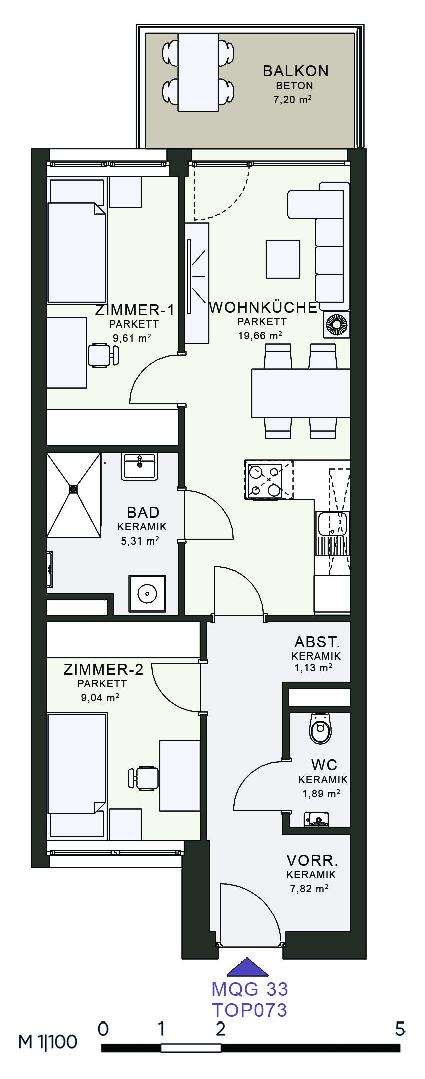 Das MQG wird als siebengeschossige bis zehngeschossige Hofstruktur realisiert und überzeugt durch eine hochwertige architektonische Umsetzung. Die vier Baukörper sind jeweils zweihüftig organisiert und über großzügige, bis zu acht Meter breite Längsatrien erschlossen, die als kommunikative Begegnungszonen dienen. Dank transparenter Glasüberdachungen sind diese Bereiche wettergeschützt und gleichzeitig lichtdurchflutet, wodurch eine angenehme Atmosphäre entsteht. Zudem ermöglicht dieses Konzept eine optimale Querlüftung aller Wohnungen.