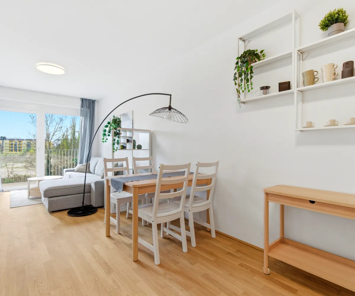Die Wohnungen bieten hochwertige Ausstattungsdetails wie Parkett- oder Keramikböden, maßgefertigte Einbauküchen, Fußbodenheizung über Fernwärme, eigene Kellerabteile sowie private Außenflächen in Form von Balkonen oder Gärten. Sämtliche Einheiten sind barrierefrei über Aufzüge oder überdachte Erschließungswege zugänglich.