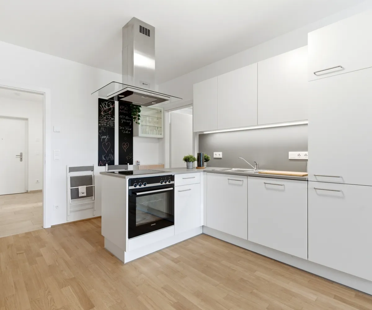 Die Wohnungen bieten hochwertige Ausstattungsdetails wie Parkett- oder Keramikböden, maßgefertigte Einbauküchen, Fußbodenheizung über Fernwärme, eigene Kellerabteile sowie private Außenflächen in Form von Balkonen oder Gärten. Sämtliche Einheiten sind barrierefrei über Aufzüge oder überdachte Erschließungswege zugänglich.