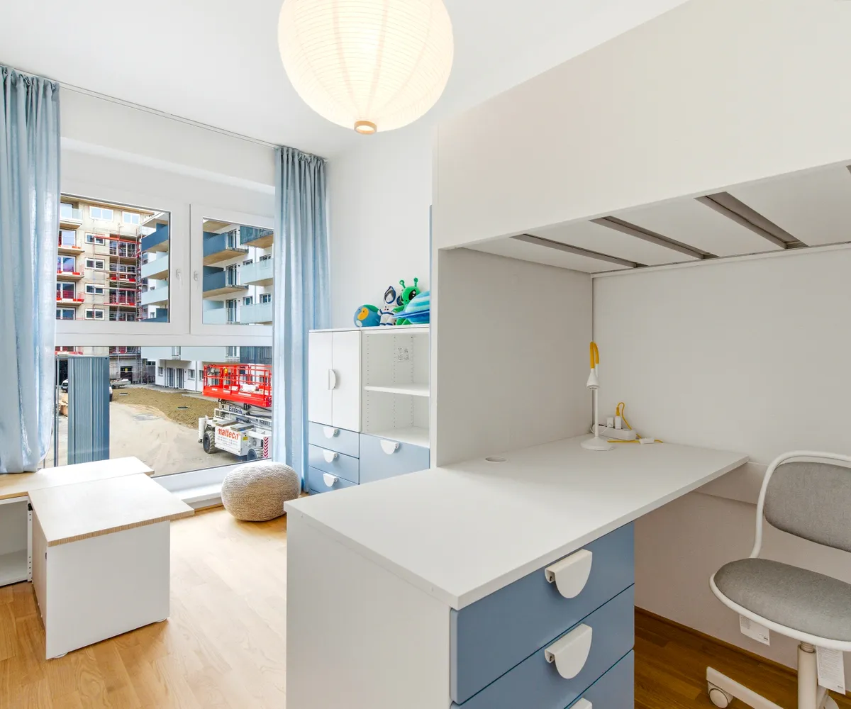 Die Wohnungen bieten hochwertige Ausstattungsdetails wie Parkett- oder Keramikböden, maßgefertigte Einbauküchen, Fußbodenheizung über Fernwärme, eigene Kellerabteile sowie private Außenflächen in Form von Balkonen oder Gärten. Sämtliche Einheiten sind barrierefrei über Aufzüge oder überdachte Erschließungswege zugänglich.